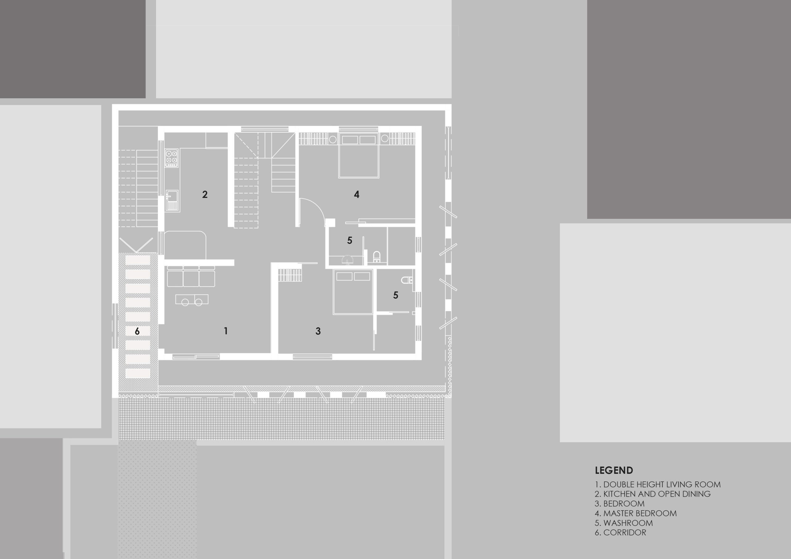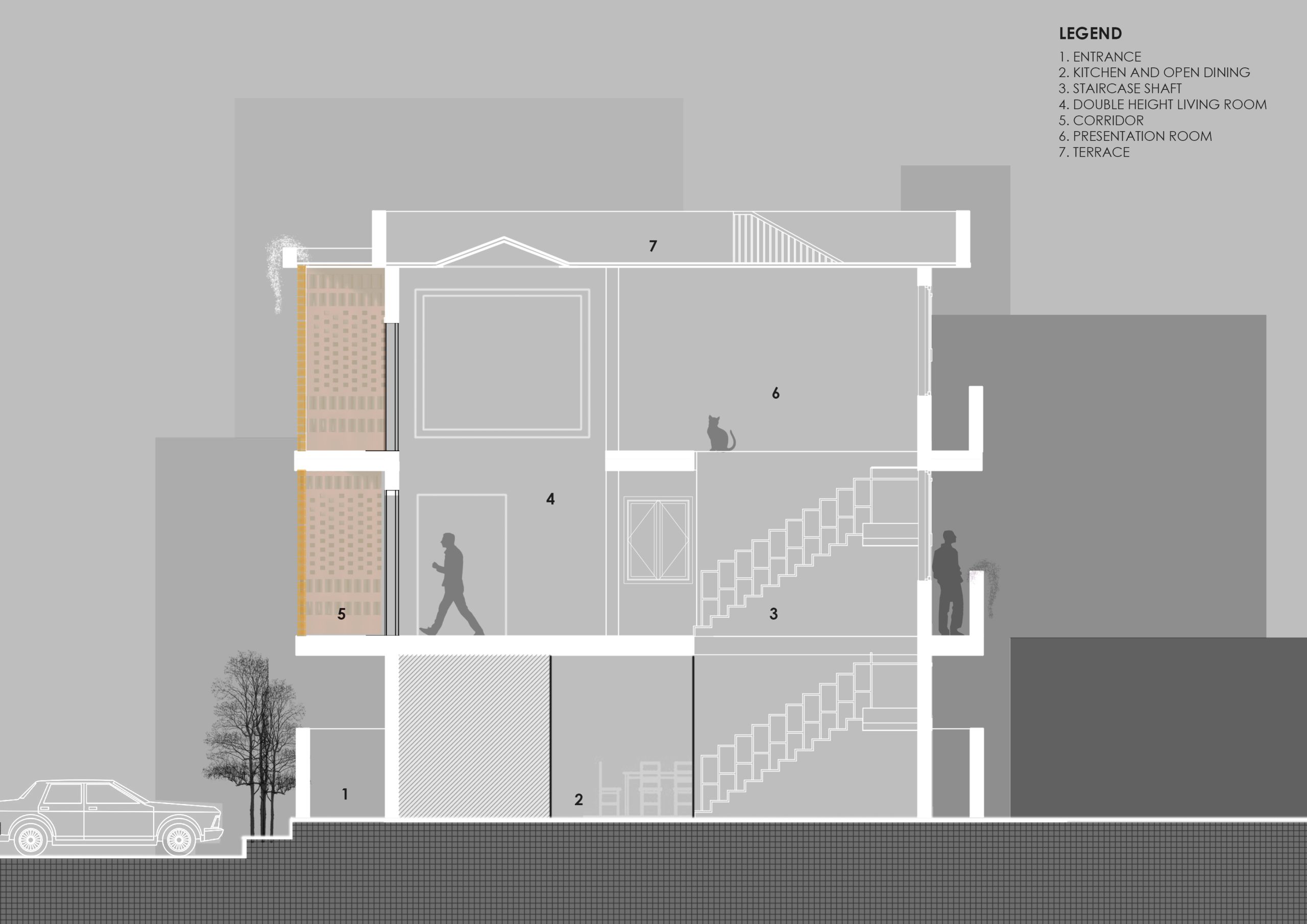 گنجاندن لایه ها باعث افزایش حریم خصوصی خانواده می شود، اما اتصال این سطوح به منظور ایجاد حس ارتباط در بین اعضای خانواده نیز بسیار مهم می باشد. معرفی یک راه پله مرکزی به عنوان یک پیوند فیزیکی در هسته خانه عمل می کند. یک قسمت نشیمن با ارتفاع دو برابر در طبقه اول به دیده شدن طبقات بالا و پایین برای یکدیگر کمک کرده است.