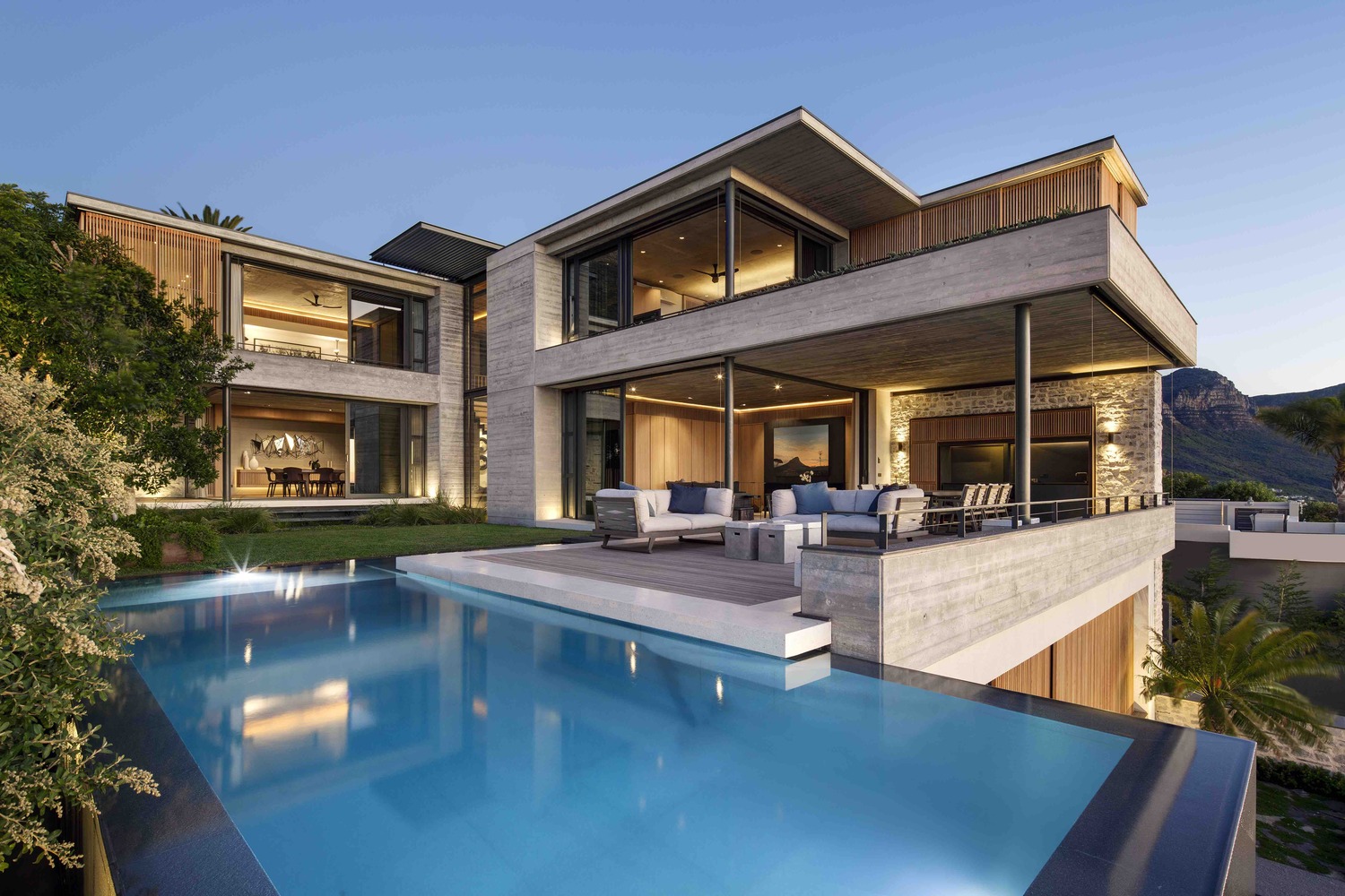 در معماری خانه ویلایی، Clifton فضاهای نشیمن سرپوشیده و بیرونی بدون درز به حیاطی راحت و محافظت شده می ریزند که به جای پاسخگویی به منظره های دریا، حداکثر نوردهی به شمال را ممکن می سازد.