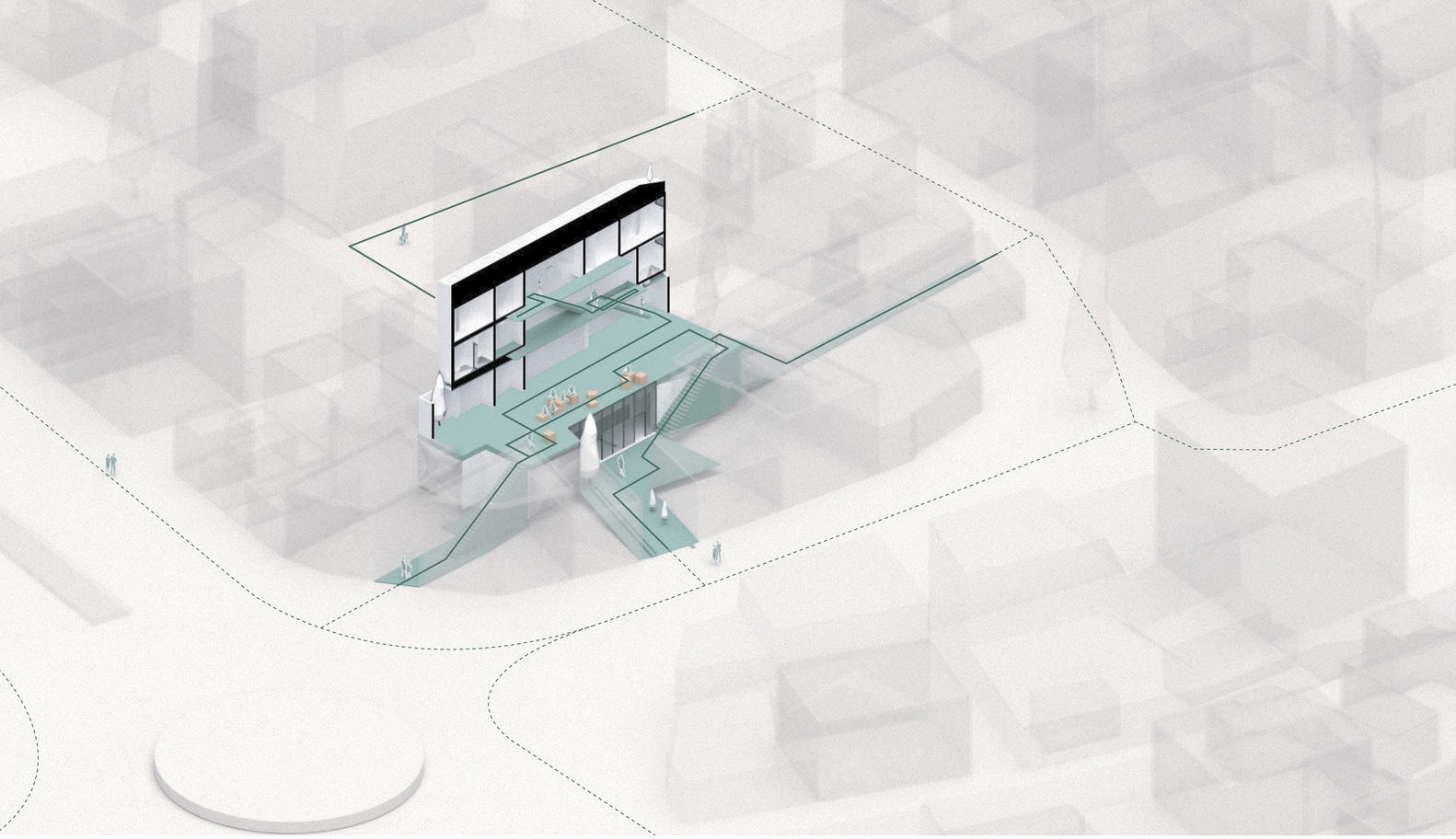 این فضای اشتراکی که تمام فضای طبقه اول پروژه را اشغال می کند، از طریق جاده عمومی و از طریق پله قابل دسترسی است، بدون اینکه مردم شهر نیازی به ورود به ساختمان یا مسدود شدن توسط کسی یا چیزی داشته باشند. به این ترتیب خیابان های شهر در داخل ساختمان ادامه یافت.