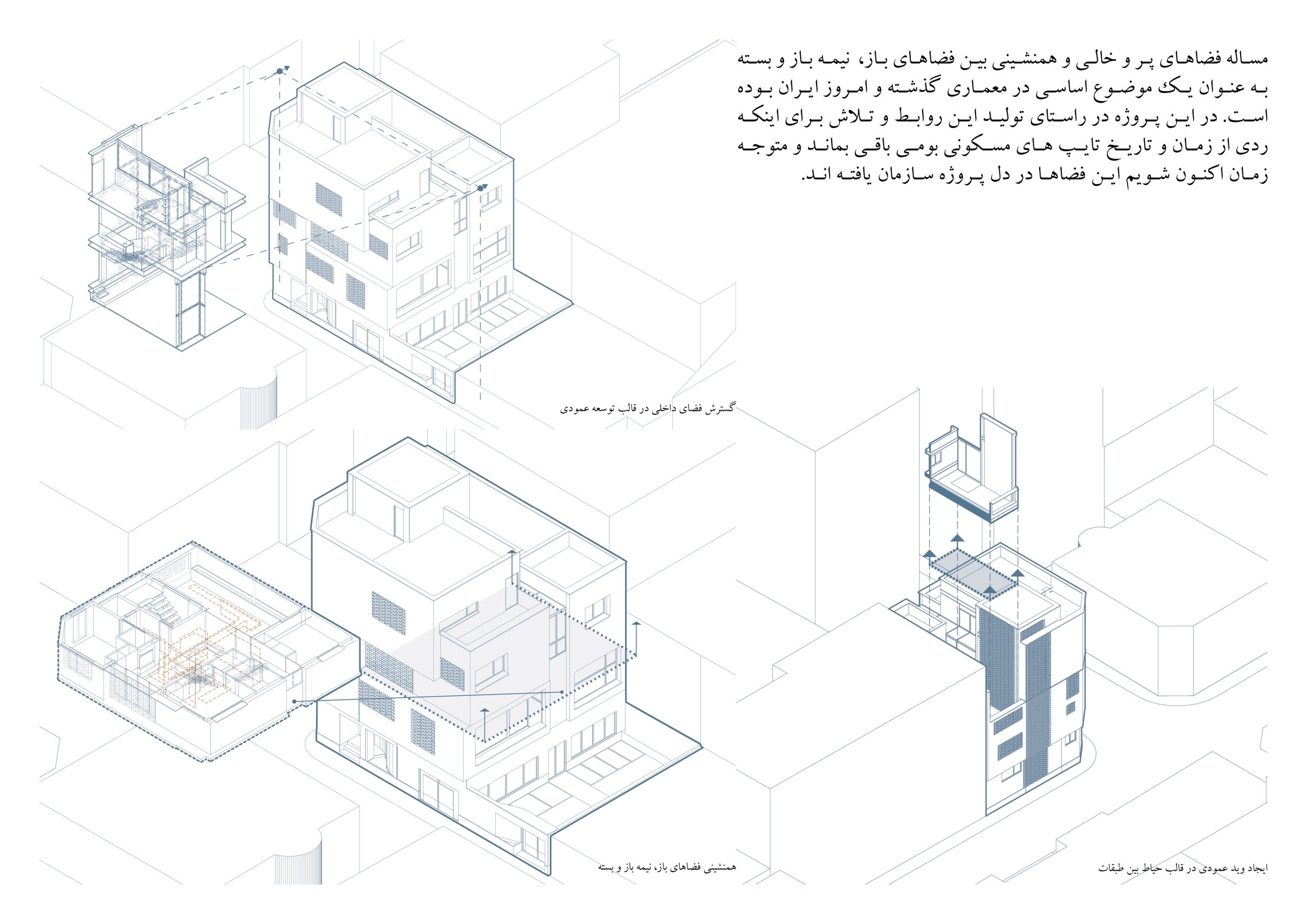 در وضعیت اینجا و اکنونی معماری ایران که ساختارهای فضایی یکنواخت، معماری را احاطه کرده است؛ این پروژه به دفتر ما ارجاع داده شد.