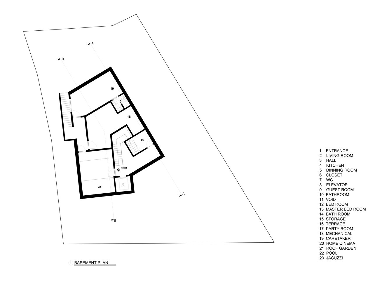 - ثانیاً، در این پروژه، کارفرما فضاهایی مانند چهار اتاق خواب مستر، سالن و اتاق نشیمن اختصاصی، آشپزخانه و همچنین سالن در اتاق خواب مجزا برای مهمانی ها، اتاق تماشای فیلم، اتاق سرایداری، اتاق رختشویی و پارکینگ برای ماشین ها. همچنین ایجاد استخر روباز و فضای سبز قابل قبول از دیگر درخواست های کارفرما بود.