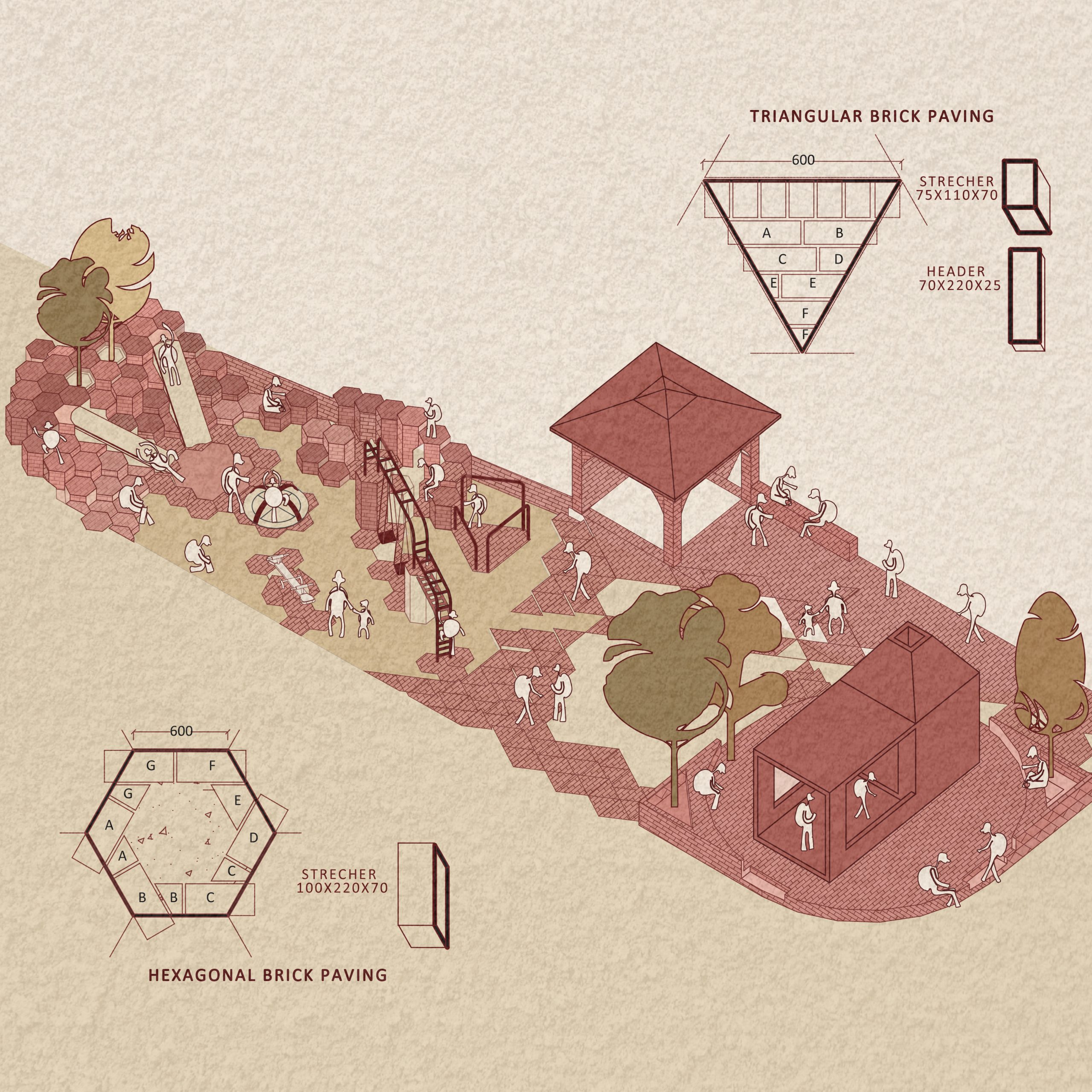 در تلاش برای ساختن یک واحه، این پروژه قصد دارد با همسایگی خود تضاد داشته باشد و تطبیق پذیری و پتانسیل آجر محلی، همراه با مزیت اقتصادی آن را به نمایش بگذارد. این سازه قصد دارد به شدت با تطبیق پذیری آجر آزمایش کند و در سایتی ساخته شده است که کارگران محلی را درگیر می کند، بنابراین یک اقتصاد دایره ای را ترویج می کند. این پروژه به عنوان یک ترکیب یکپارچه از یک ماژول منفرد (آجر) گرد هم می آید که در ترکیب های متنوع بر اساس عملکردهای مختلف استفاده می شود.