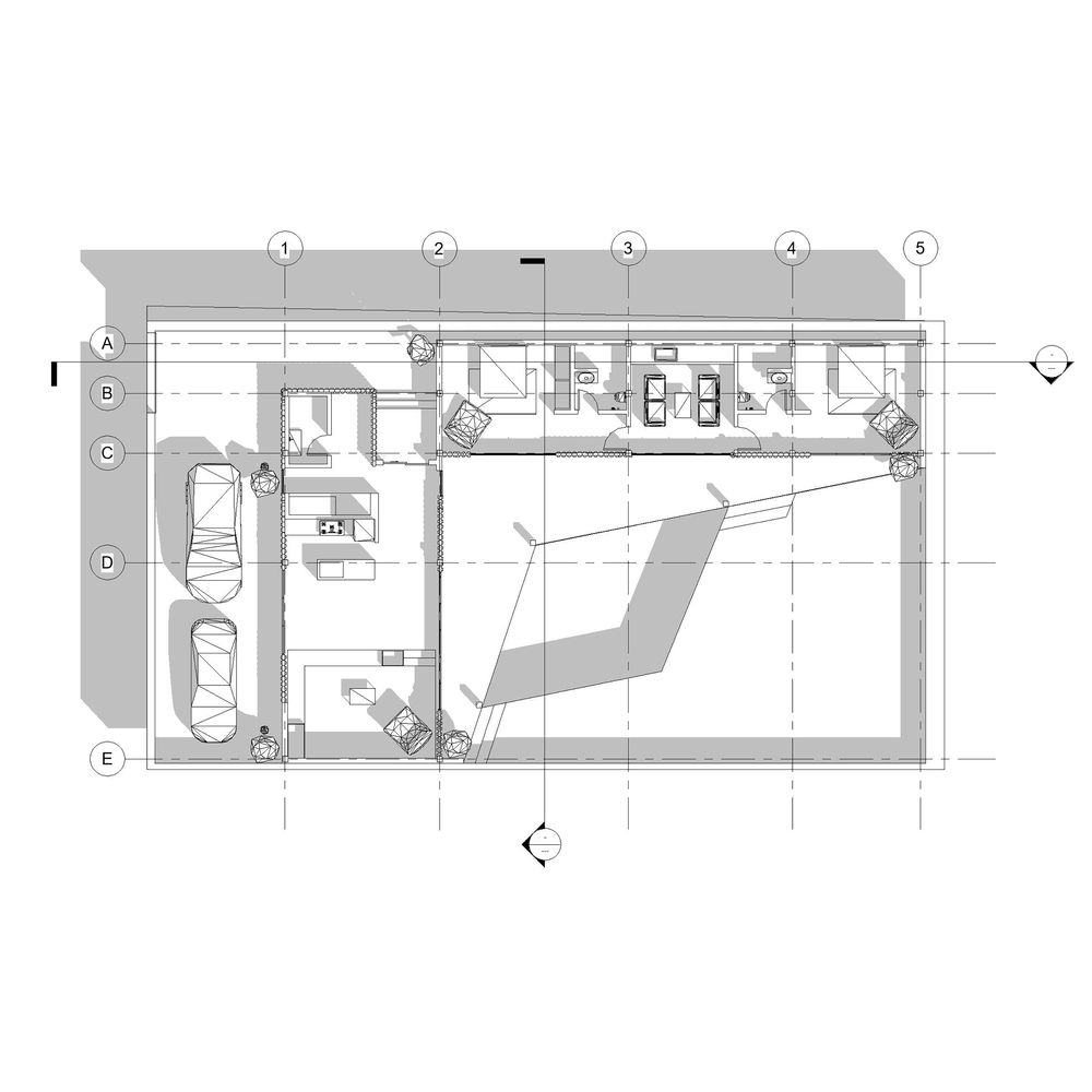 علاوه بر این، میل به فضایی آرام و دور از سالن اصلی پذیرایی و مهمانی منجر به ایجاد فضاهای خصوصی و اتاق خواب های خلوت تر در یک طبقه شده است. این فضاها توسط یک بالکن عمیق به هم متصل می شوند که امکان انجام فعالیت های مختلف را به طور همزمان فراهم می کند و باعث می شود ویلا در طول دوره های اشغال کمتر انرژی را بهینه کند و به کاهش مصرف انرژی کمک کند. شکل ویلا دارای خطوط شکسته و پاستیل های هندسی است که گوشه هایی را ایجاد می کند. این طراحی نه تنها امکان ایجاد بالکن های وسیع را فراهم می کند بلکه مناظر خیره کننده ای را نیز ارائه می دهد. خطوط شکسته همچنین به منظور ایجاد سایه در مناطقی که نور شدید خورشید را دریافت می کنند و آسایش حرارتی را تضمین می کند.