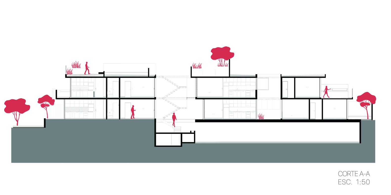 زندگی در خانه. بازگشت به خانه. احساس در خانه بودن. هیچ جایی مثل خانه نیست. این عبارات اغلب شنیده، گفته و احساس می شوند بدون اینکه به قدرت و اهمیت کلمه خانه توجه شود: بزرگی فضا، مسئولیتی که به همراه دارد و محبتی که ایجاد می کند. پروژه ما کاری جز دنبال کردن ایده تبدیل یک ساختمان به یک خانه انجام نمی دهد. این پروژه در ویلا کارلوس پاز، شهری تپه ای در استان کوردوبا واقع شده است که با طبیعت و رودخانه ها و دریاچه اش احاطه شده و دائماً با تپه هایی که از منطقه شهری محافظت میکنند، همراه است. اینجا جایی است که پروژه ما متولد شد، ساختمانی متشکل از واحدهای مسکونی در محلهای مجاور مرکز شهر، که آن را از شلوغی گردشگری دور نگه می دارد و در عین حال در یک محیط طبیعی شهری قرار می دهد.