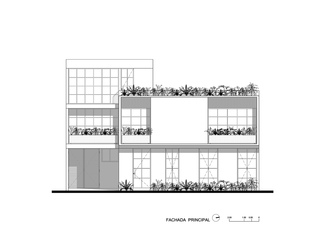 اتاق نشیمن، اتاق دوم و فضای پارکینگ دوم حذف شده اند تا راه برای منابع برنامه ریزیشده ی مختلف که طرح معماری را غنی تر میکنند، باز شود. در طبقه همکف، یک فضای پارکینگ واحد پیشنهاد شده و یک انباری کوچک اضافه شده است. حذف اتاق نشیمن به این دلیل پیش بینی شده است که مشتری واقعاً پویایی اجتماعی اطراف آشپزخانه را ترجیح می دهد. بنابراین، فضای غذاخوری با نورهای صبح و عصر تغذیه می شود و با پاسیویی که با یک صفحه آجری سفالی تزئین شده است، همراه است که در آن میتوانند گیاهانی با گلدانهای مختلف به سبک آزاد داشته باشند.