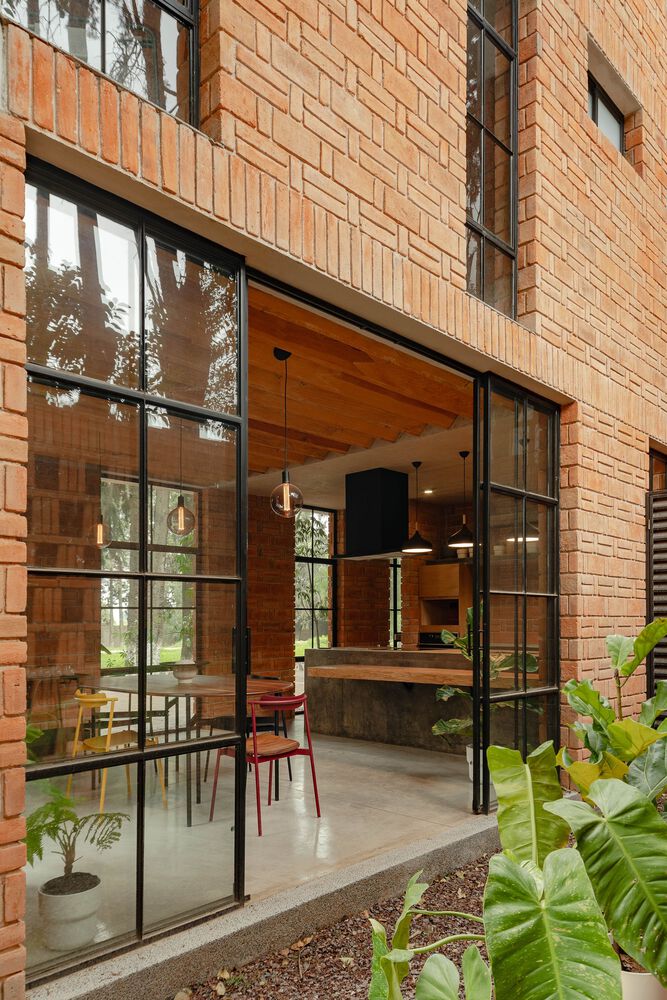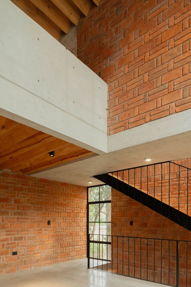 ما برای این پروژه مصالح معمول منطقه را پیشنهاد دادیم: آجر سفالی قرمز و کاشی های معمول تالاورا در ترکیب با مصالح ساختمانی معاصر مانند بتن و شیشه. برای پنجره ها، قاب فولادی به عنوان فراخوانی برای معماری مدرن اواسط قرن بیستم در مکزیک در نظر گرفته شد، که پنجرهها و راهحلهای آن به یاد ماندنی و جذاب هستند، ویژگیهایی که اخیراً از بین رفتهاند.