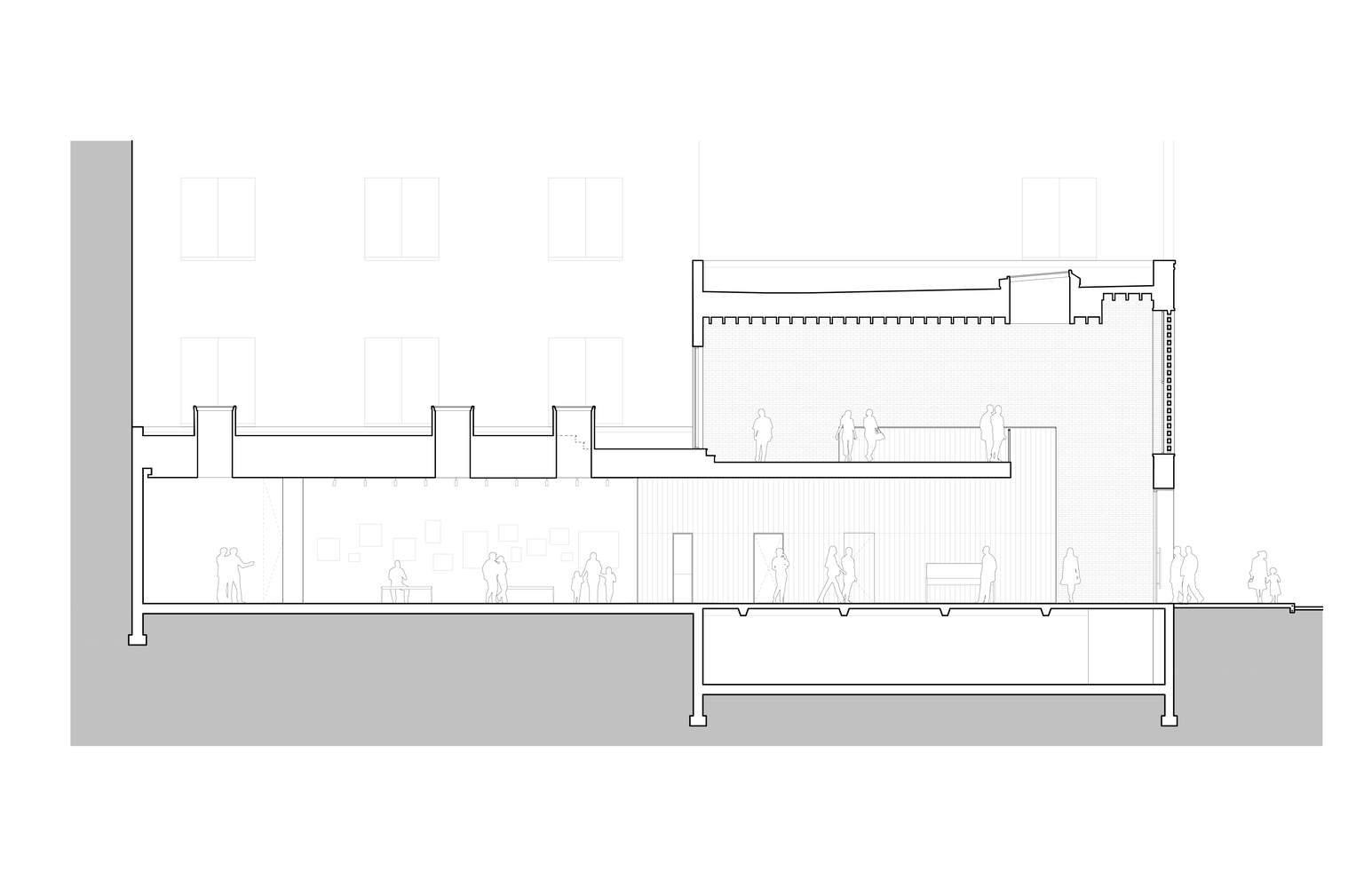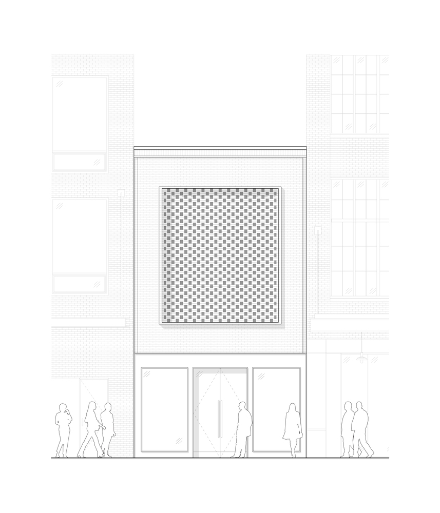 یک ویترین و ورودی از فولاد و شیشه، ساختمان را به گذشته صنعتی خود متصل می کند، در حالی که سطح خیابان را برای دید خرده فروشی و دسترسی به نور طبیعی باز می کند. در بالای ویترین فروشگاه، حجم صفحه نمایش آجری چشمگیر و قاب نواری تداعی کننده نقش برجسته های تزئینی آجرکاری است که در سراسر منطقه یافت می شود و تفسیری مدرن از این بافت ها و الگوهای بنایی ارائه می دهد.