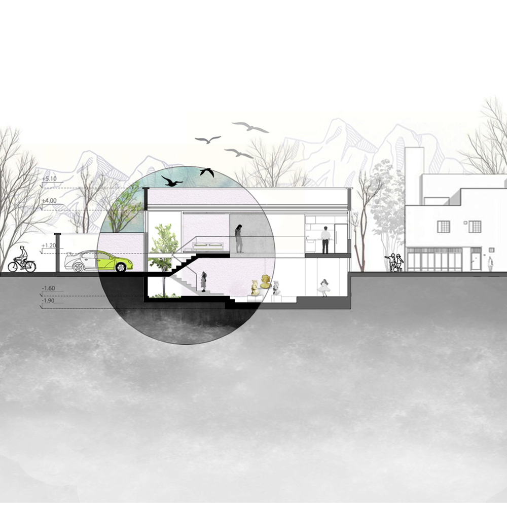 چالش اولیه در تبدیل انبار به یک فضای قابل سکونت ظاهر شده است. وظیفه ای که شناسایی و ایجاد یک محیط زندگی مناسب را در جایی که زمانی منطقه ای نامشخص، کم نور و غیرشخصی بوده، ضروری می کند. راه حل این معضل در الهام گرفتن از فضای منحصر به فرد حاکم بر خانه های ایرانی بوده است. شایان ذکر است، خانه های ایرانی با ترکیب عناصر ضروری مانند حوضچه های آب، درختان و جریان هوای دلپذیر متمایز می شوند. این مولفه ها کیفیت های فضایی متنوعی را به ارمغان می آورند و تأثیر عمیقی بر رفاه ساکنان دارند.