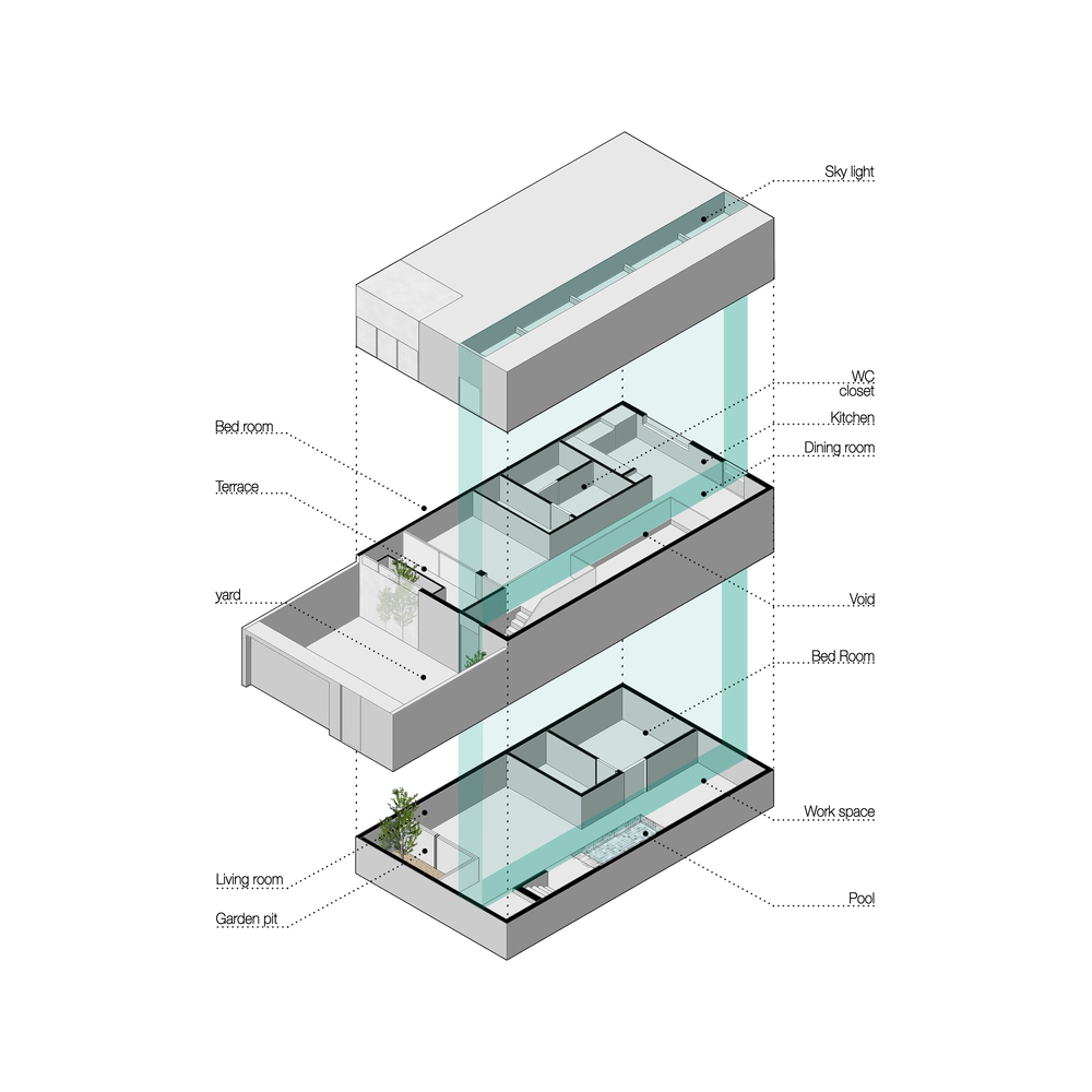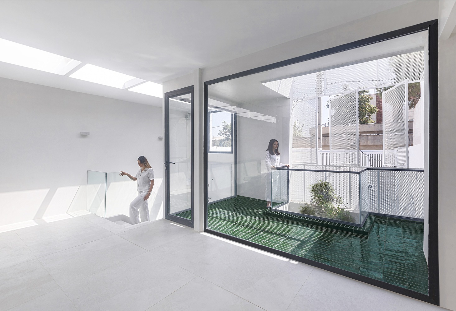 نکته قابل توجه، حفره‌ های طراحی‌ شده استراتژیک در این فضا نه تنها هجوم نور طبیعی را تسهیل می‌ کنند، بلکه امکان اتصال بصری در امتداد محور z را فراهم می‌ کنند و تجربه فضایی منسجم‌ تری را تقویت می‌ کنند.