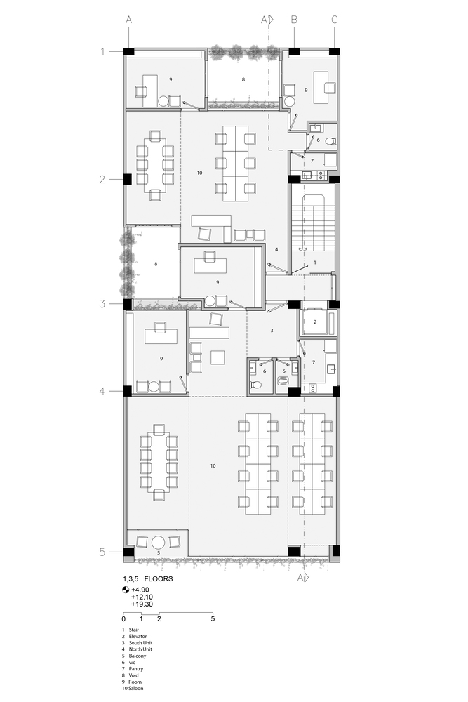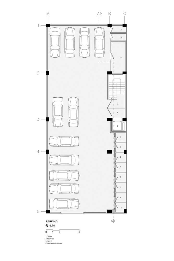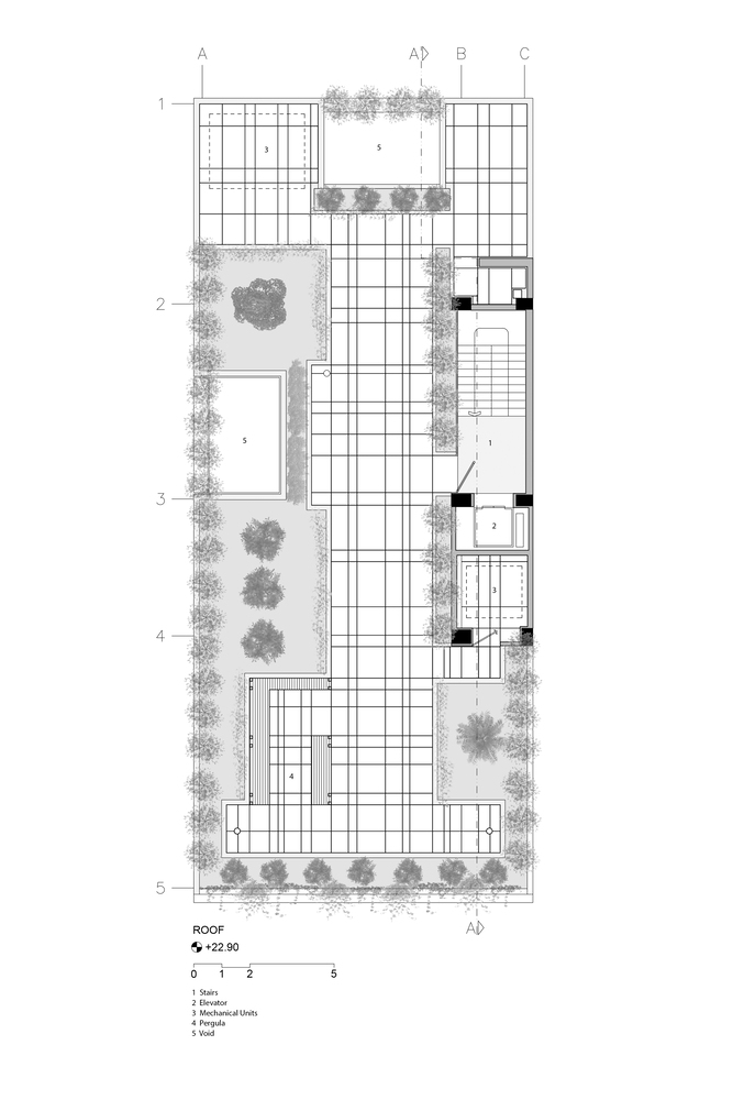 بنابراین ایده اصلی این پروژه طراحی فضای باز با جزئیات هر چه بیشتر برای ایجاد فضای سبز در حیاط بوده است. با هدف انتقال حس آرامش و انرژی طبیعت به عابران، همسایگان، شهر و شهروندان. آسایش را در این تراکم و شلوغی حتی در مدت کوتاهی تجربه کنید. در طراحی نما از یک طرف نیاز به ایجاد حداکثر سطح برای دریافت بیشترین نور برای پلان باز و از طرف دیگر به دنبال سطحی برای نمایش نمای ساختمان بوده اند.