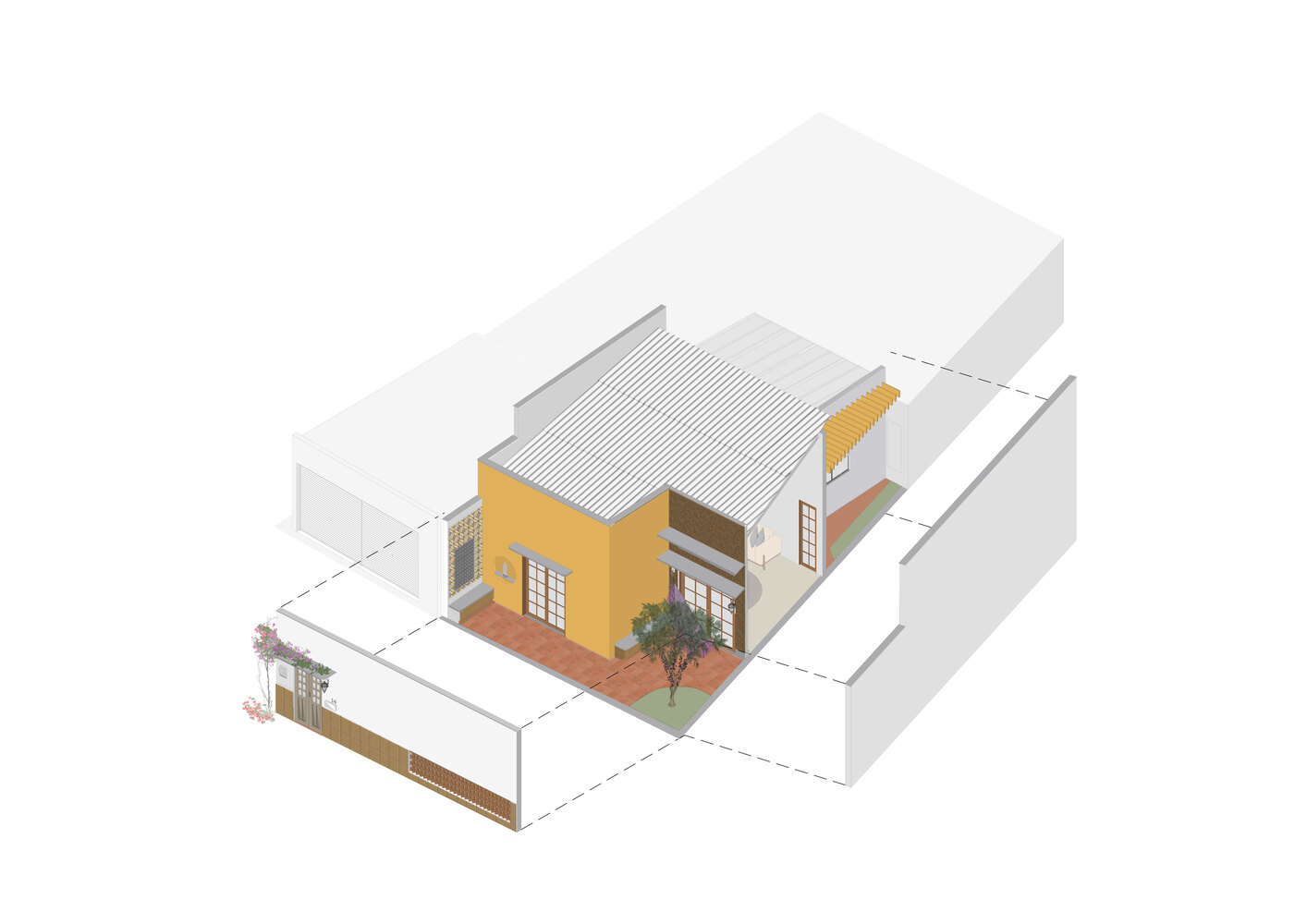 خانه ویلایی فوق که در فیرا نوا، شهری با ۲۰ هزار نفر جمعیت است قرار دارد. ساخت اولیه توسط ساکنان محلی در دهه ۱۹۸۰ با استفاده از تکنیک های خشتی می باشد.در طول سال ها، که منعکس کننده ی یک رویه رایج در میان جمعیت های کمدرآمد است، این ساختمان برای سازگاری با شرایط جدید خانواده، دستخوش بازسازیهای مختلفی شده است. این «اضافات» متوالی که برخی از مشکلات فوری را برطرف می کردند، منجر به یک توده ساختمانی متراکم و با عملکرد ضعیف شدند که با فقدان تهویه و روشنایی کافی مشخص می شود. علاوه بر این، با افزایش سن، ساکنان شروع به تجربه بیماری های تنفسی کردند که نیاز به بازسازی جدید را تقویت می کرد.