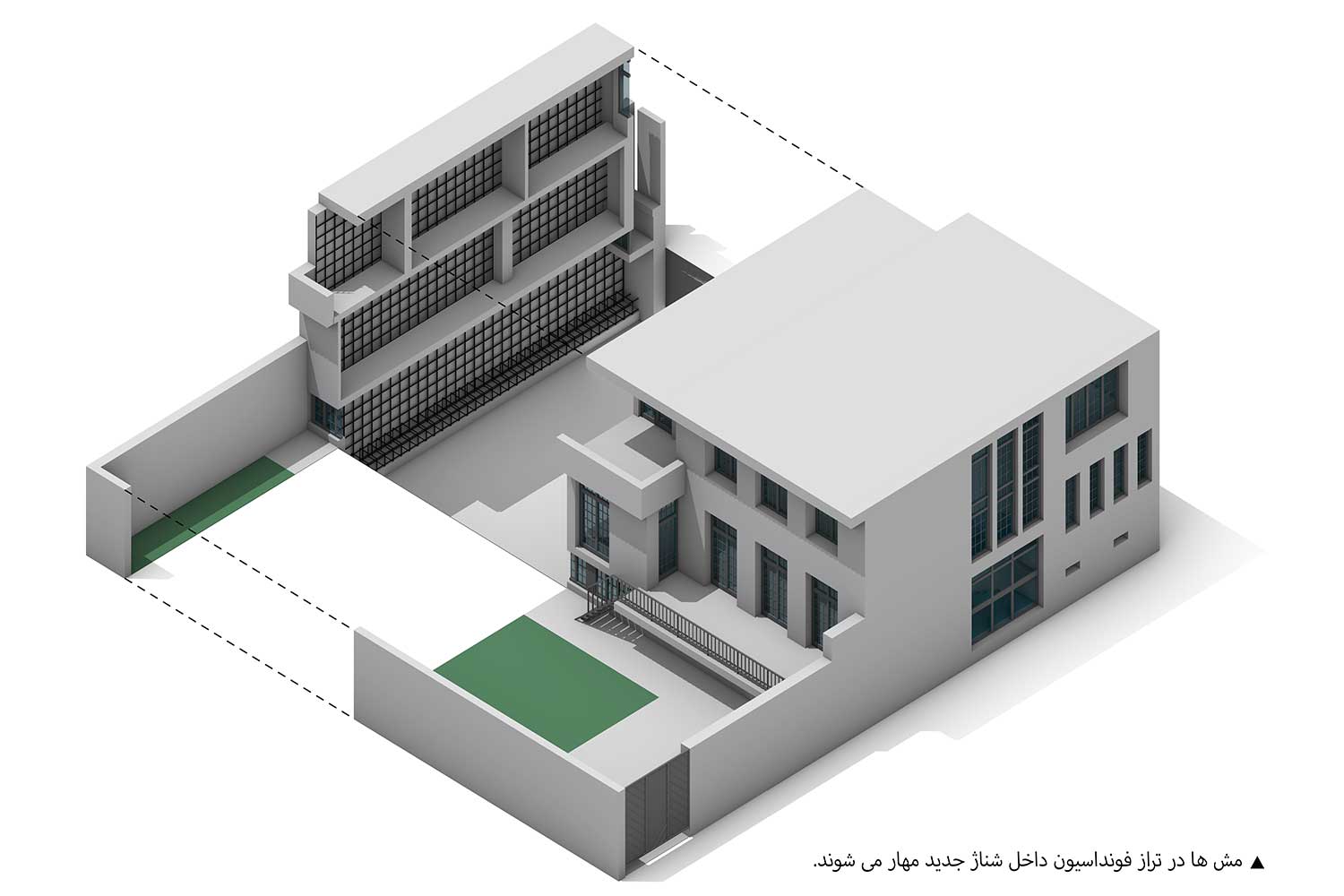 در این پروژه، مساله اصلی ما نه تنها بازسازی و احیای یک فضا و حتی نه تنها ایجاد یک اثر معماری واجد ارزش، بلکه رسیدن به یک الگوی ساختاری منعطف، چند وجهی و قابل گسترش و به روز شدن برای ترسیم سکونت در سطح زیرین شهر(زیر زمین ها) است. این الگو به ما این امکان را می‌ دهد که در آینده نیز با تغییر نیازها و شرایط، ساختار را به روز کرده و ضمن حفظ هویت فرهنگی و تاریخی با اعمال تغییرات لازم به نیازهای جدید فضایی پاسخ دهیم و بنا را زنده نگه داریم.