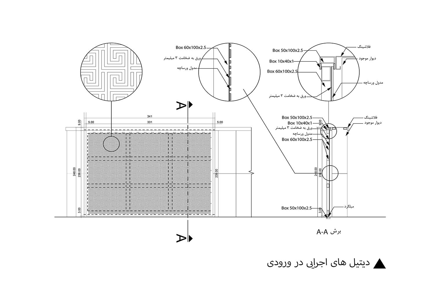 •  نبشی کشی سراسری در طول دیوارها و در محل اتصال دیوارها به سقف.