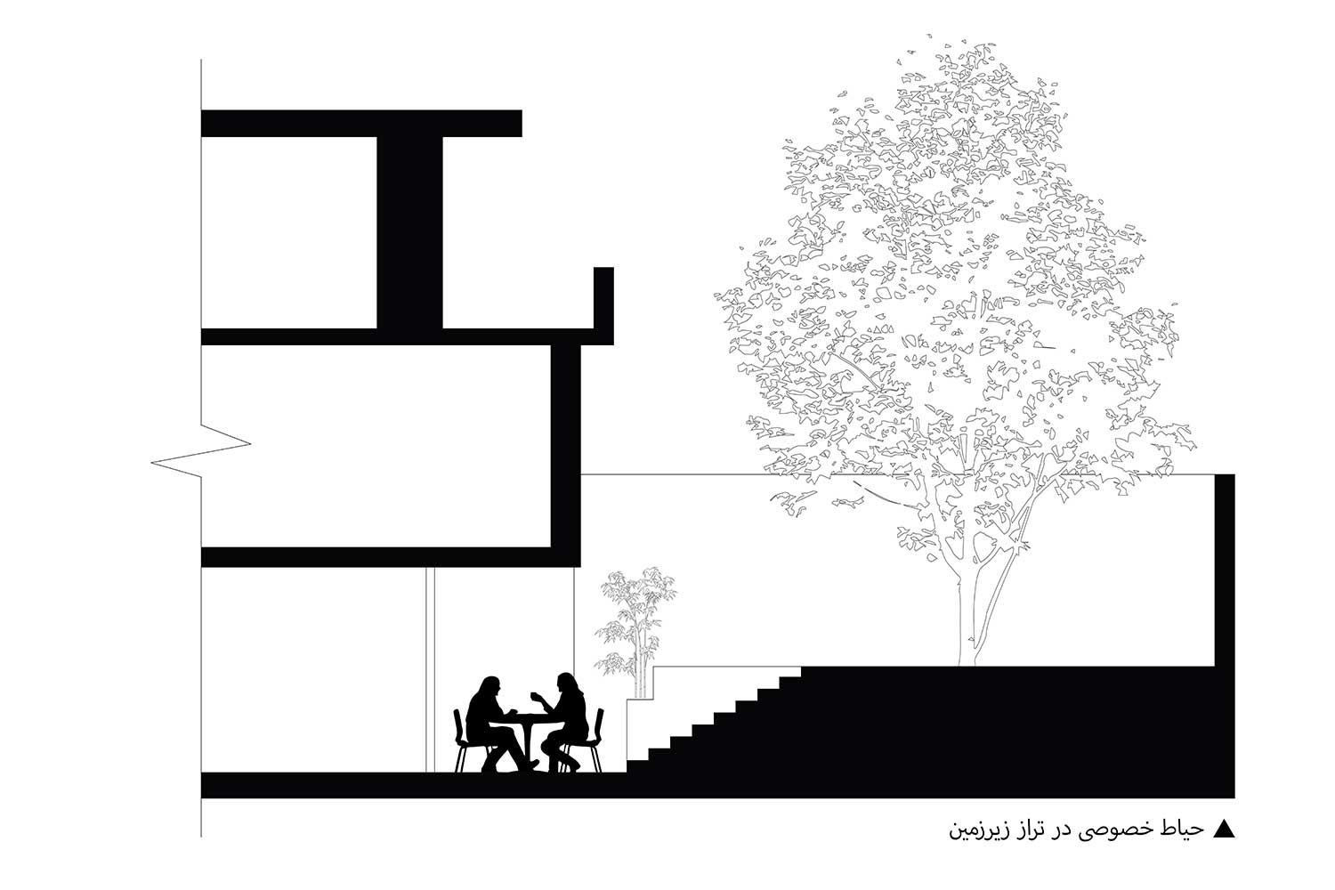 به طور خلاصه، طبقات فرو رفته در زمین عنصری مشترک در خانه های بافت قدیمی تهران محسوب می‌شوند که ما با دور کردن حیاط از جداره های بنا توانستیم واحد را از دفن شدن در زمین نجات دهیم.