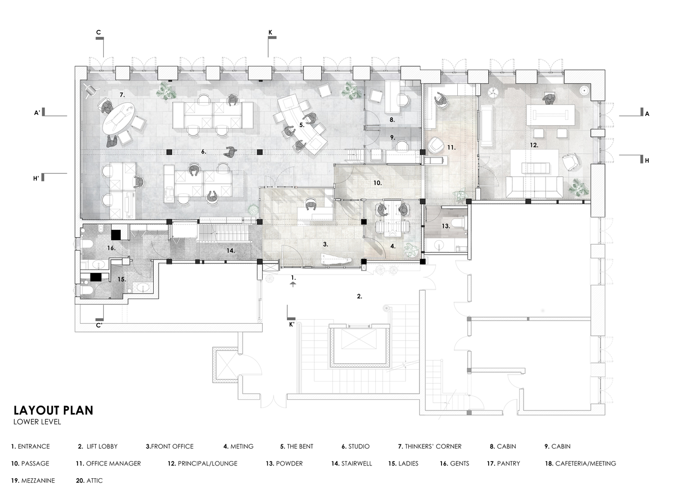 جایی که جلسات مشترک، کارگاه ها و نمایشگاه ها می توانند برگزار شوند، گفتمان جدیدی را در انجمن برادری ایجاد می کند و شکاف بین دانش آموزان و متخصصان را پر می کند. Loft بیانی شاعرانه است که در آن خلقت و ماهیت ساختار موجود اجازه داده می شود تا افسار را در دست بگیرد و طرح را به جلو سوق دهد.