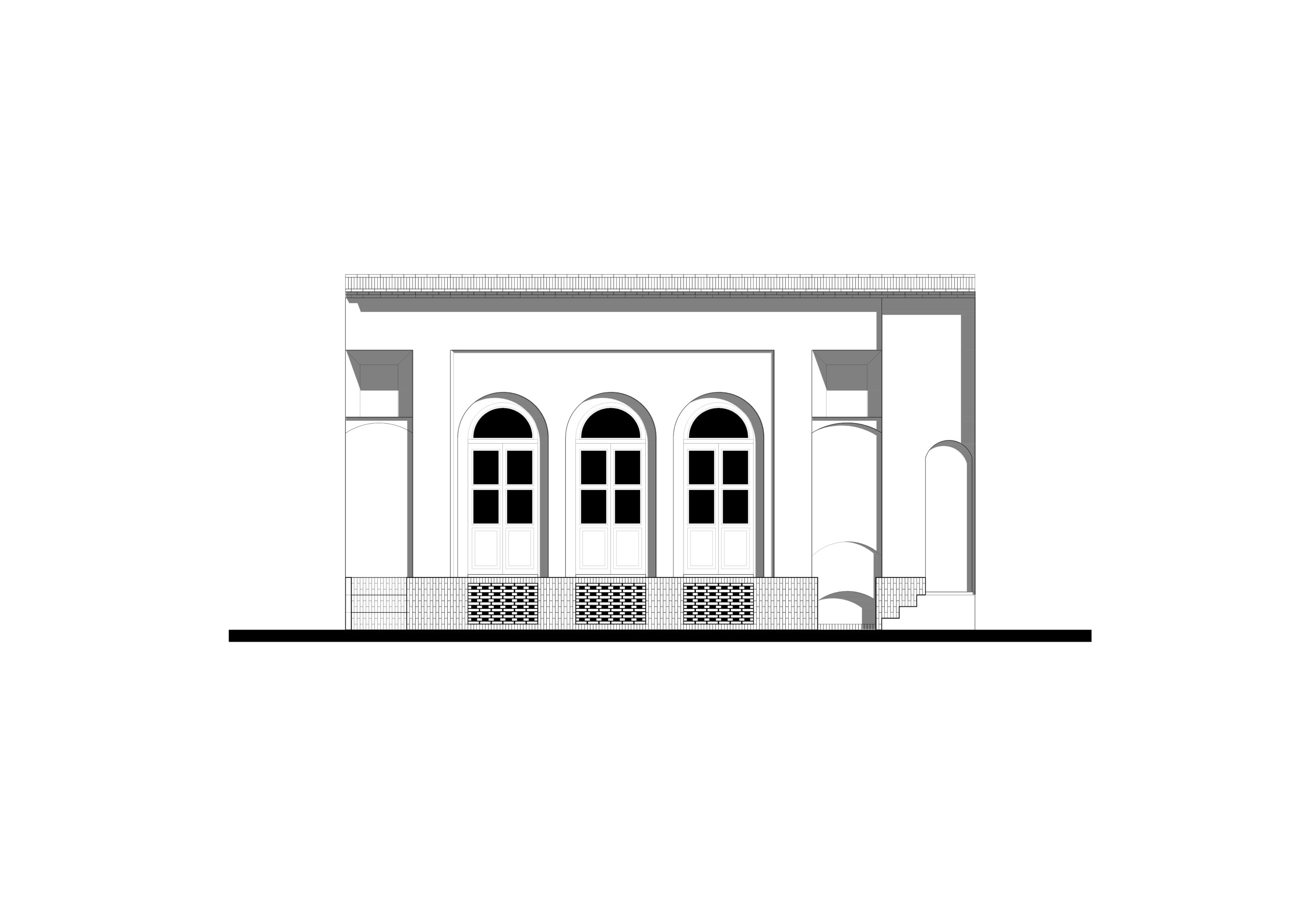 در اثر مداخلات و افزوده های ساکنین قبلی، ایوانِ خانه – با ضلع گشوده رو به شرق- به وسیله دیواری مسدود و تبدیل به مهمانخانه ای نه چندان درخور دیده بود؛ به نحوی که احیای ایوان و گشایش فضایی حاصل از آن، هیچ جای بحث و تردید نداشت. ورای مباحث کارکردی و ریخت و زیبایی شناسی، ایوانِ رو به شرق و آغوش بر مطلعِ خورشید گشودن، موضوعِ قابل تأملی بود که ریشه های خانه را به ژرفای تاریخ و فرهنگ پیشینیان فرو می برد.