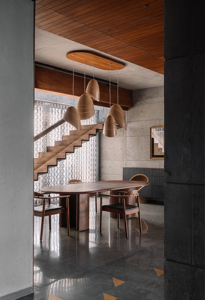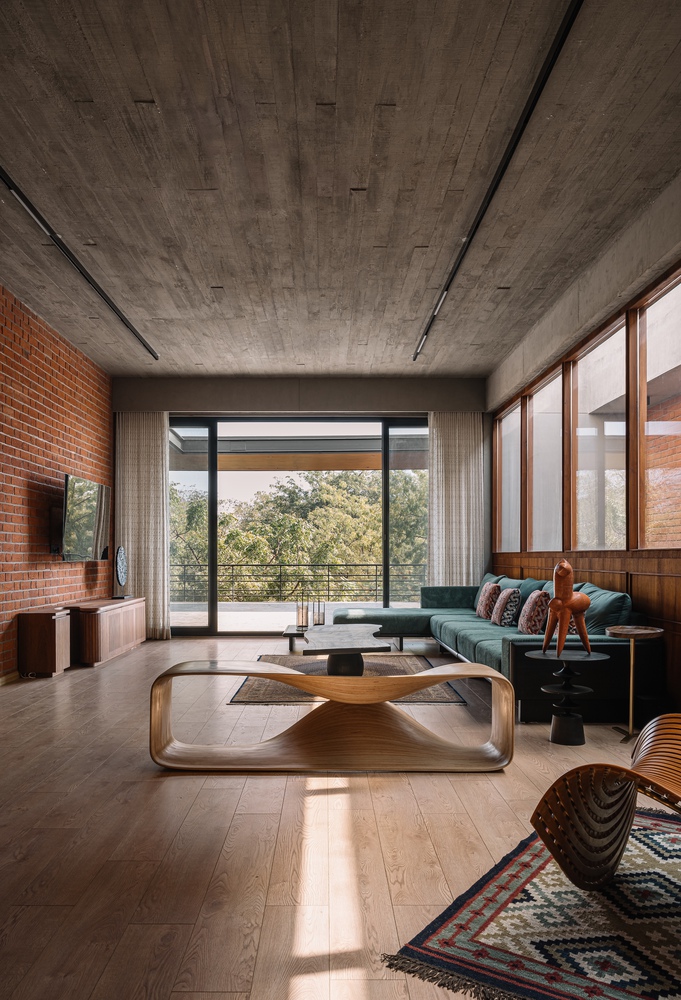 بالکن ها و تراس ها به طور خاص برای قاب کردن منظره درختان بالغ موجود قرار گرفته اند و به چشم انداز اجازه می دهند تا به پناهگاه های خصوصی طبقه بالا “جریان” یابد. این ادغام تضمین می کند که حتی خصوصی ترین قسمت های خانه نیز ارتباط حسی با فضای سبز و نسیم را حفظ کنند. این طرح با به چالش کشیدن گرایش های معاصر به زندگی بخش بندی شده تحت تأثیر سبک زندگی فردگرایانه و تهویه مطبوع، تجربیات فضایی سیال را پرورش می دهد. فضاها عمداً به هم پیوسته اند و حس گشودگی و تداوم را ترویج می دهند.