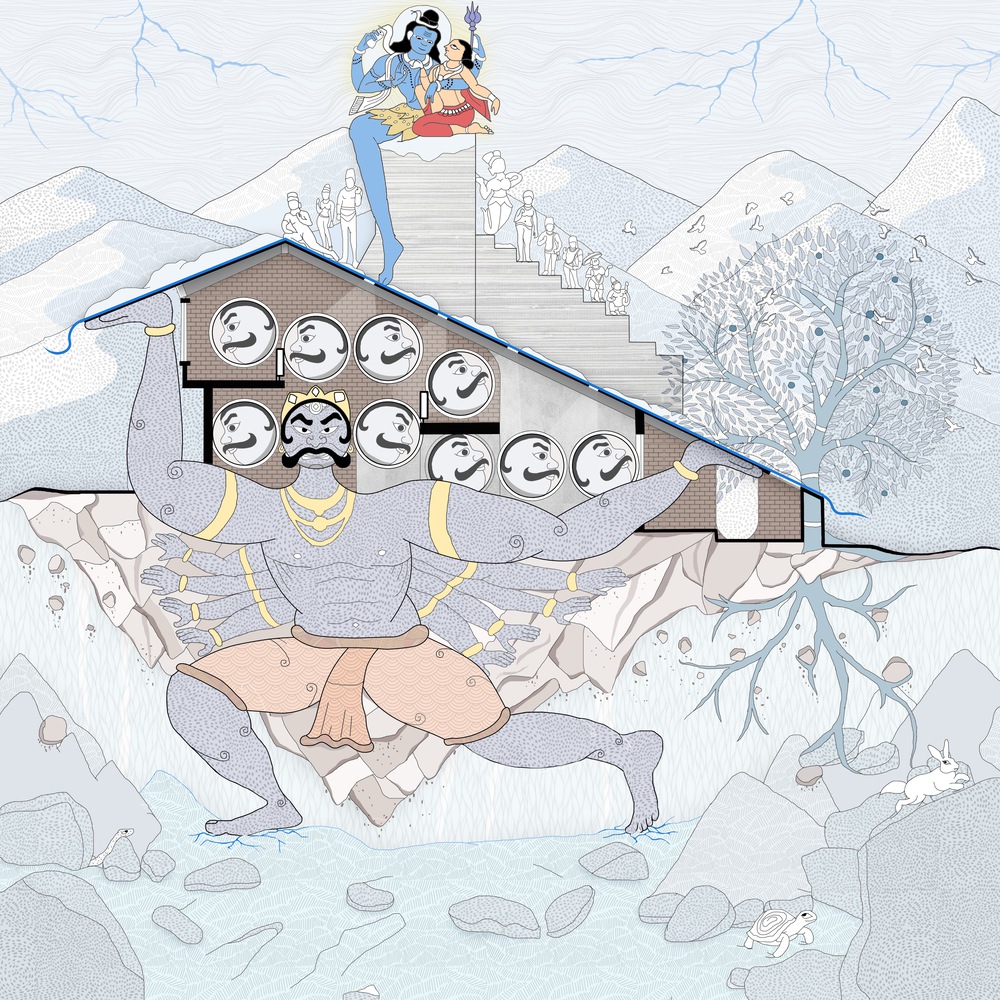 این دو بلوک متمایز، که تحت تأثیر محدودیتها شکل گرفتهاند و هرکدام با ملودی خود اجرا میشوند، یک دوگانگی پویا را به نمایش می گذارند. اگرچه متفاوت در نظر گرفته شدهاند، اما نوعی اجرای بداهه در موسیقی هند که در آن دو نوازنده باهم آمیخته می شوند — با هم متحد می شوند: یکی باز و جشنگونه، دیگری آرام و درونگرا. این معماری نشان میدهد چگونه میتوان تضاد و پیچیدگی را پذیرفت و به واسطه آن یک تجربه فضایی غنی و لایهلایه ایجاد کرد.
