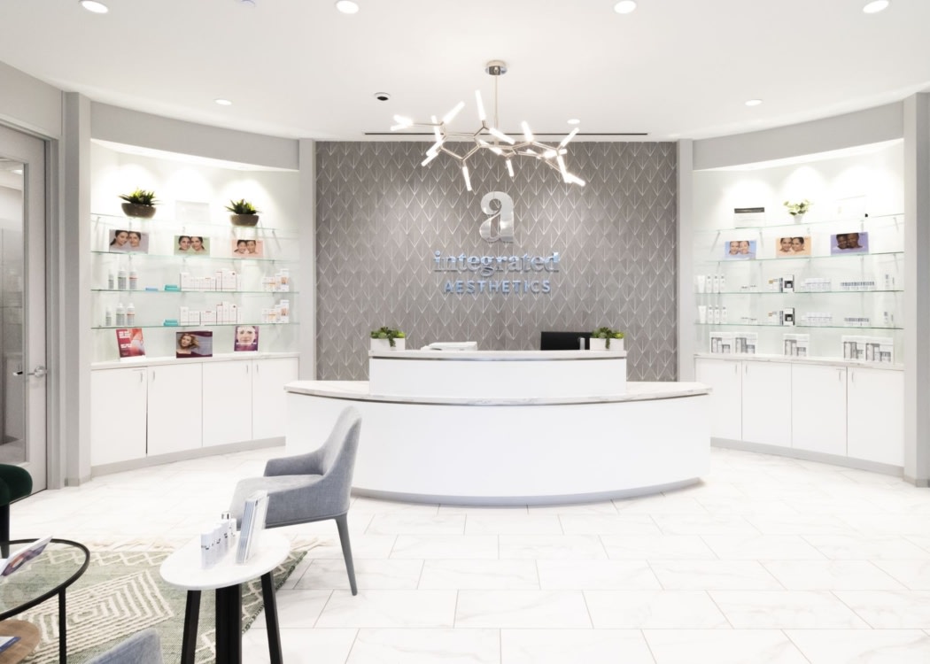 این پروژه با تقلید از یک فروشگاه بوتیک، برای مشتریان خود در فضای پذیرایی رسمی با علامت هایی از لوگوی جدید Medspa که به یک پوشش دیواری با طراحی پیچیده را تزئین شده، طراحی شده است. کابینت و قفسه های سفارشی در کنار میز پذیرایی شیک نصب شده است تا نمایشگری مدرن برای مجموعه محصولات زیبایی لوکس این برند ارائه دهند. متد برای تمجید از دیوارها و قفسه‌ های خنثی، رنگ‌ های سبز و رژگونه را برای مبلمان و منسوجات به عنوان اشاره‌ ای به رنگ‌ های جدید برند Integrated Aesthetics انتخاب شده است.