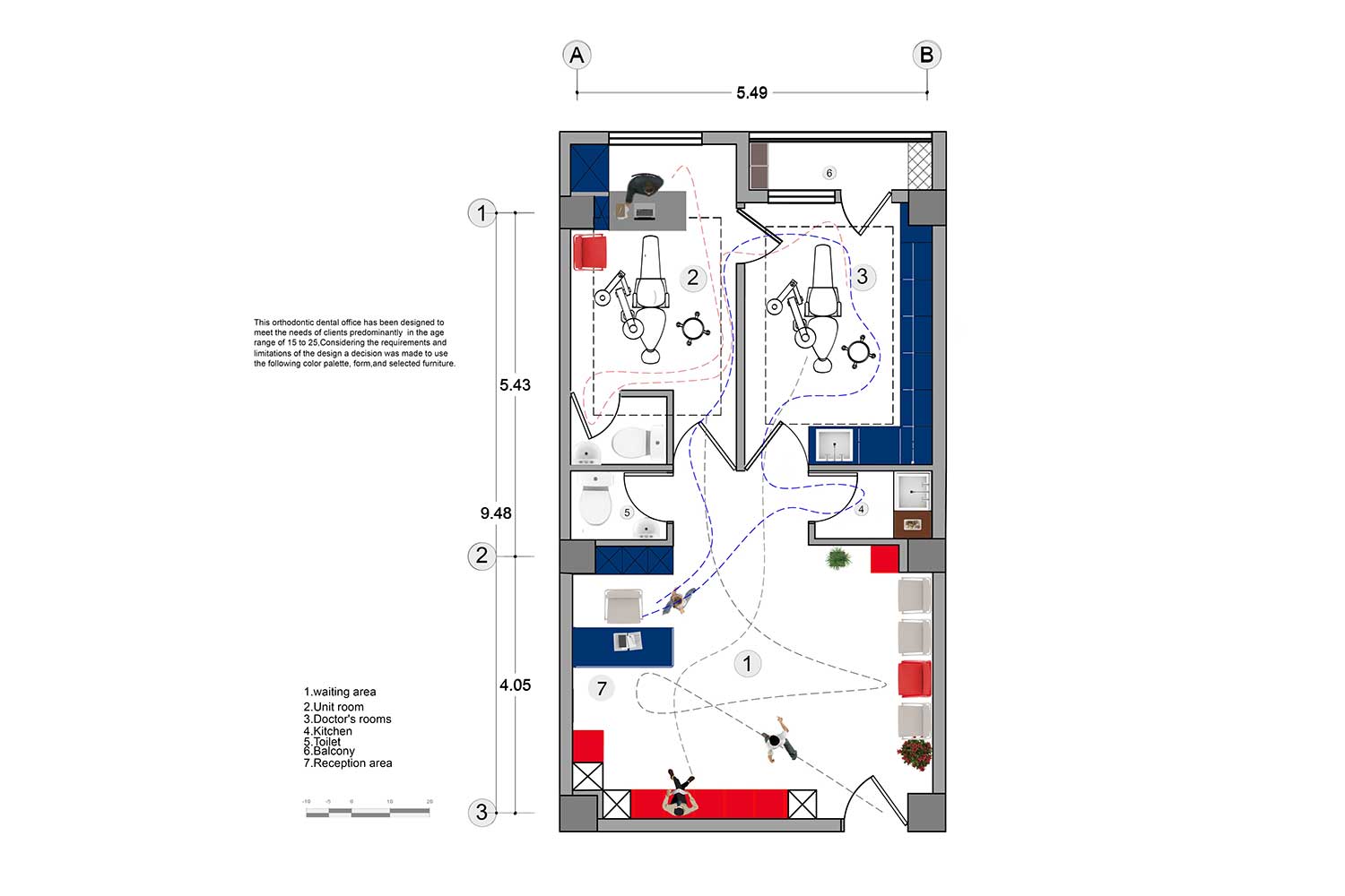 دکوراسیون مطب دندانپزشکی دندانپزشکی واحد تجاری به مساحت ۵۸ متر مربع در یک ساختمان ۵ طبقه در شهر رشت می باشد. که نمونه‌ ساختمان پزشکی است. این مجموعه دندانپزشکی دارای دو اتاق و یک اتاق نشیمن با سرویس بهداشتی و یک آشپزخانه کوچک می‌ باشد. در ادامه به شرح و بررسی طراحی فضای داخلی مطب مورد نظر می پردازیم.