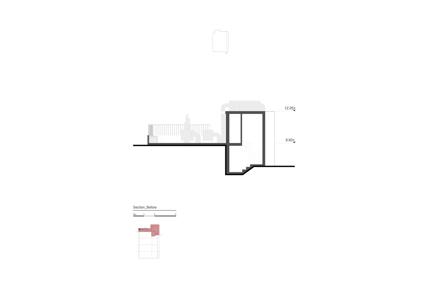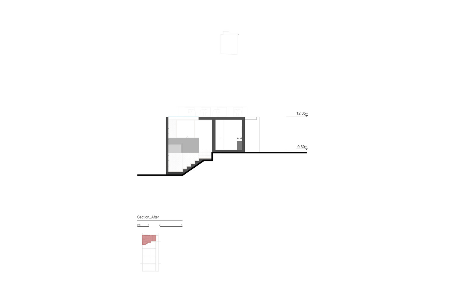 این تنظیمات حداکثر میدان دید و ارتباط با محیط اطراف را به اتاقک می دهد. در همین حال، با قرار دادن ورودی در فرود طبقه پایین، حذف دیوارهای غیر ضروری در راه پله، تعریض فرود و نصب نورگیر بر روی سقف، فضایی برای تجربه های تصادفی ایجاد شده است. با اندیشیدن به بافت غالب و صفحه پایه و ایجاد فضایی بدیع و در عین حال آشنا، تمامی دیوارها و کف داخلی و خارجی آسفالت شده است.