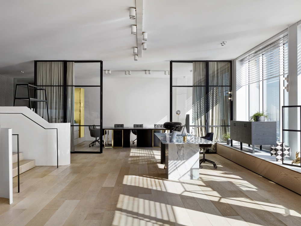 دفتر  معماری استلا بر ایجاد یک حس گرم خانگی متمرکز بوده است که خطوط مهمان نوازی واقعی در محل کار را محو می کند و احساس آزادی و فضای باز را تشویق کرده است. جزئیات سفارشی بودن در همه جا از چراغ های دیواری گرفته تا صندلی وجود دارد.