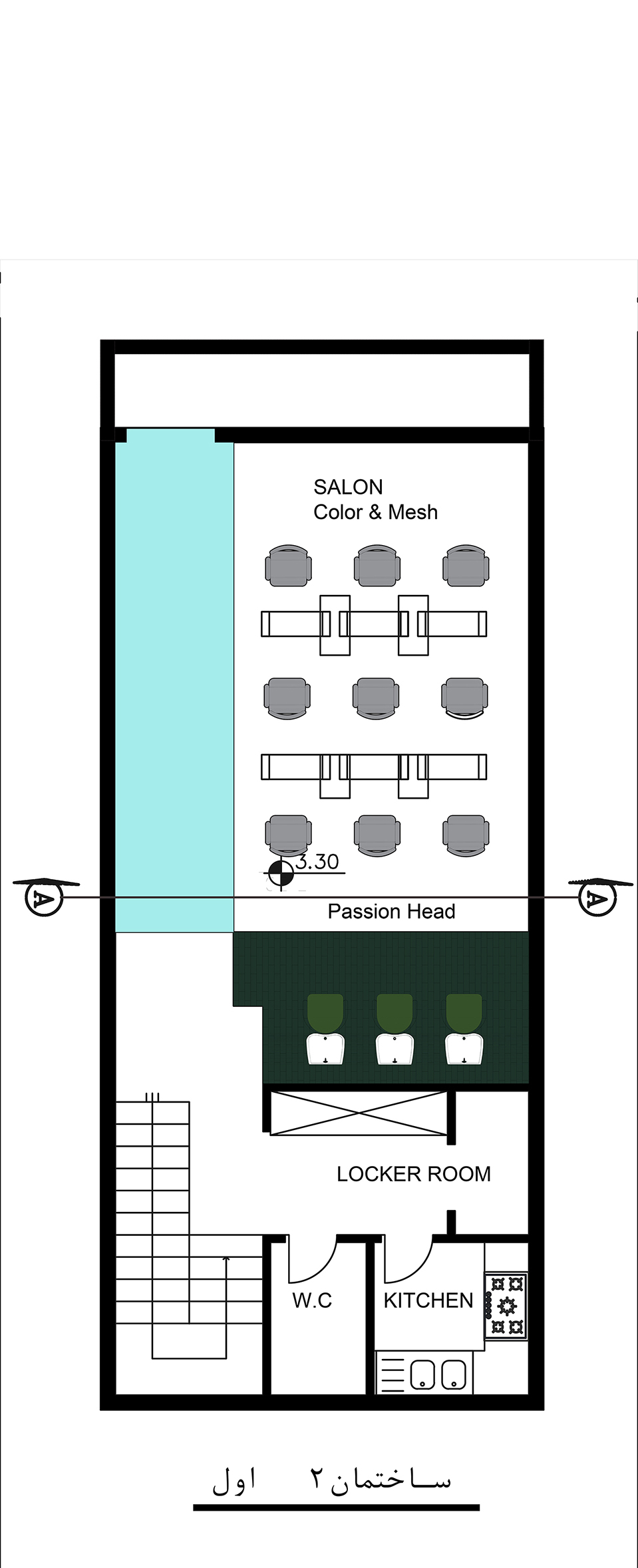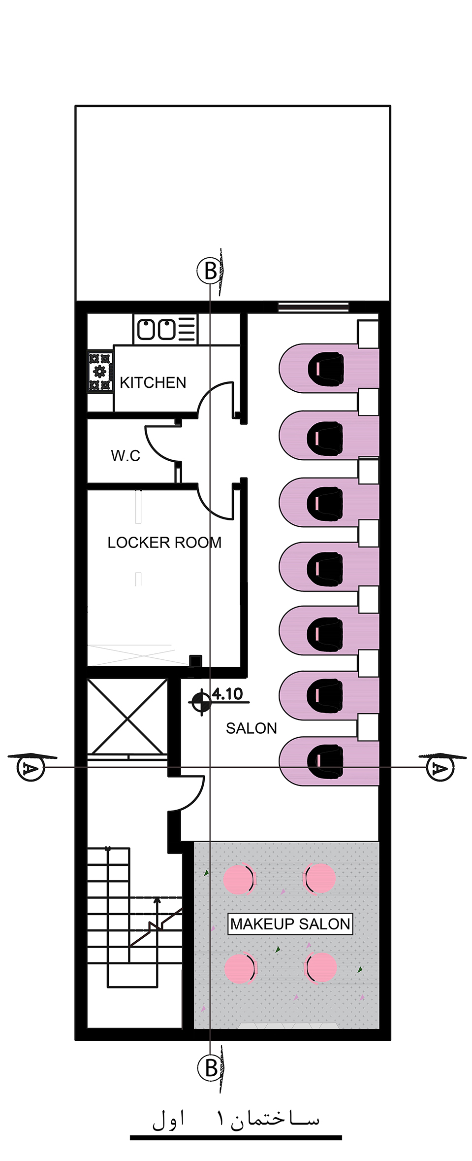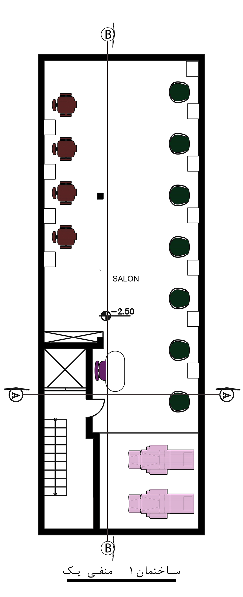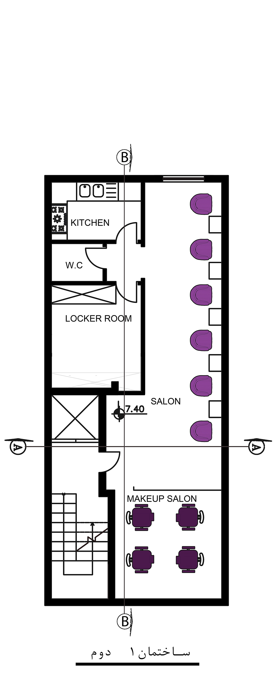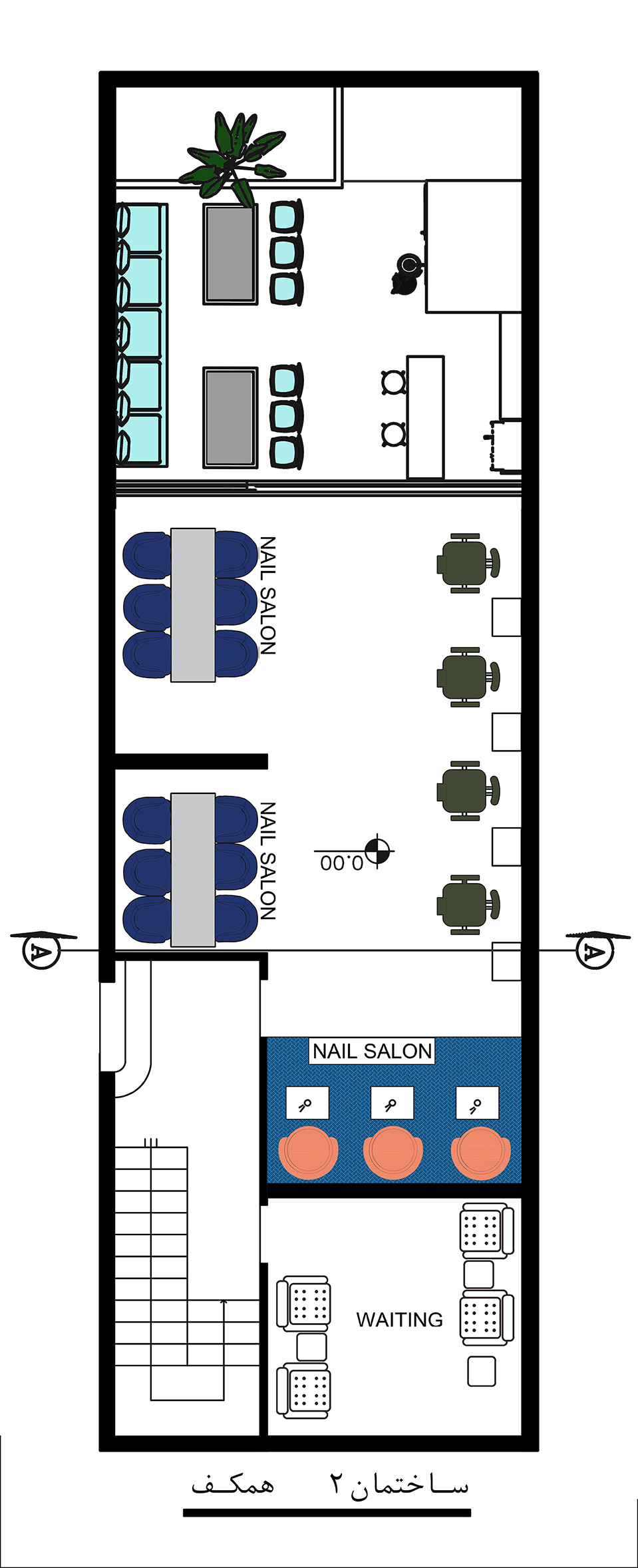 - پلان ها، دیاگرام و سکشن دکوراسیون داخلی سالن زیبایی