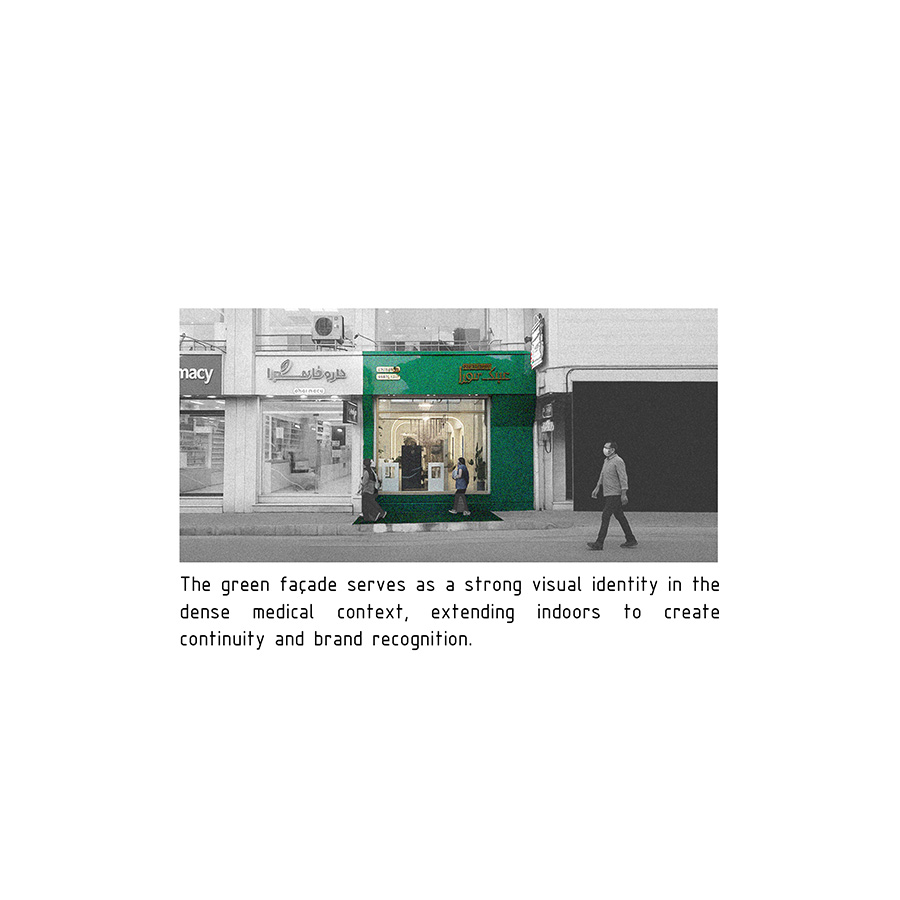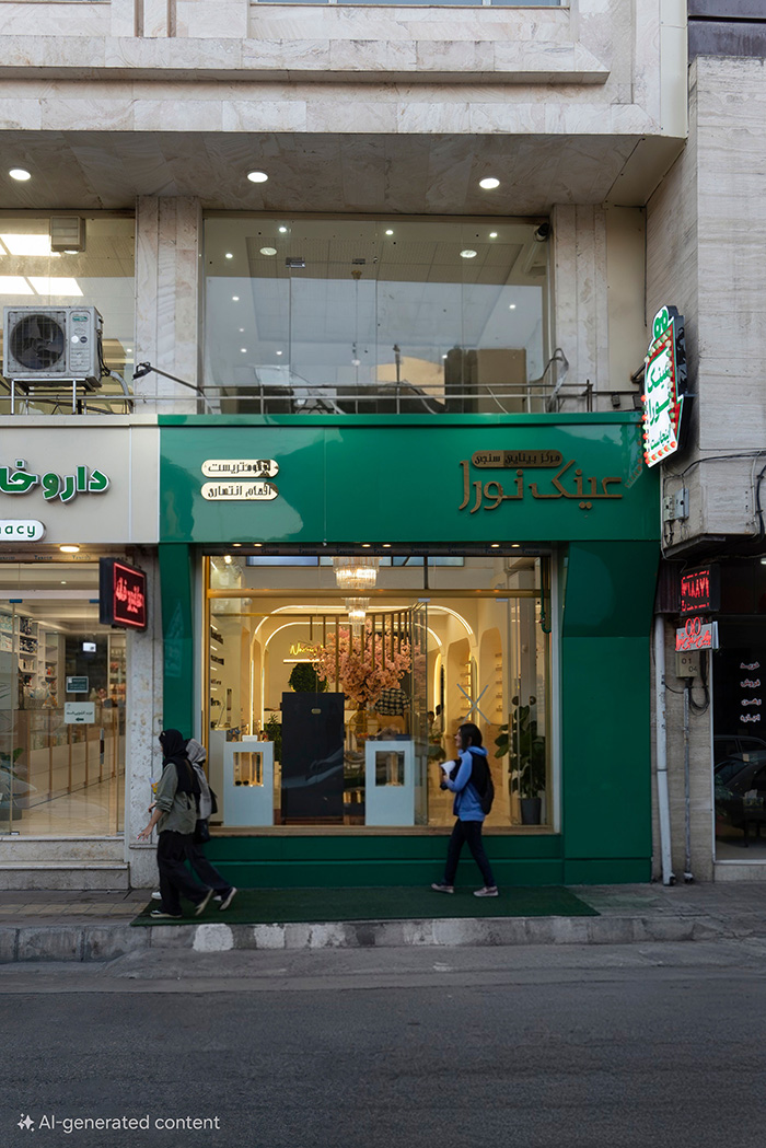 مقدمه طراحی داخلی مغازه عینک سازی و بینایی سنجی نورا در یکی از خیابان های شلوغ رشت که به حوزه مراقبت های بهداشتی اختصاص دارد، با هدف ایجاد محیطی دلپذیر، خوانا و کاربردی انجام شد. زمین باریک، با عرض تنها ۳.۵ متر و طول ۱۷ متر (۷۰ متر مربع طبقه همکف)، به همراه یک طبقه فوقانی ۳۵ متر مربعی برای فضاهای پشتیبانی، چالش طراحی قابل توجهی را ایجاد کرد. موقعیت مکانی پروژه – که توسط کلینیکها، مطبهای پزشکی و فروشگاههای مشابه احاطه شده است – هویتی متمایز و تجربه کاربری بهبود یافته را ضروری میکرد. خوانایی، هویت و حضور شهری برای دستیابی به تمایز بصری در یک بافت شهری رقابتی، نما و ورودی با هویت رنگی قوی طراحی شدند.