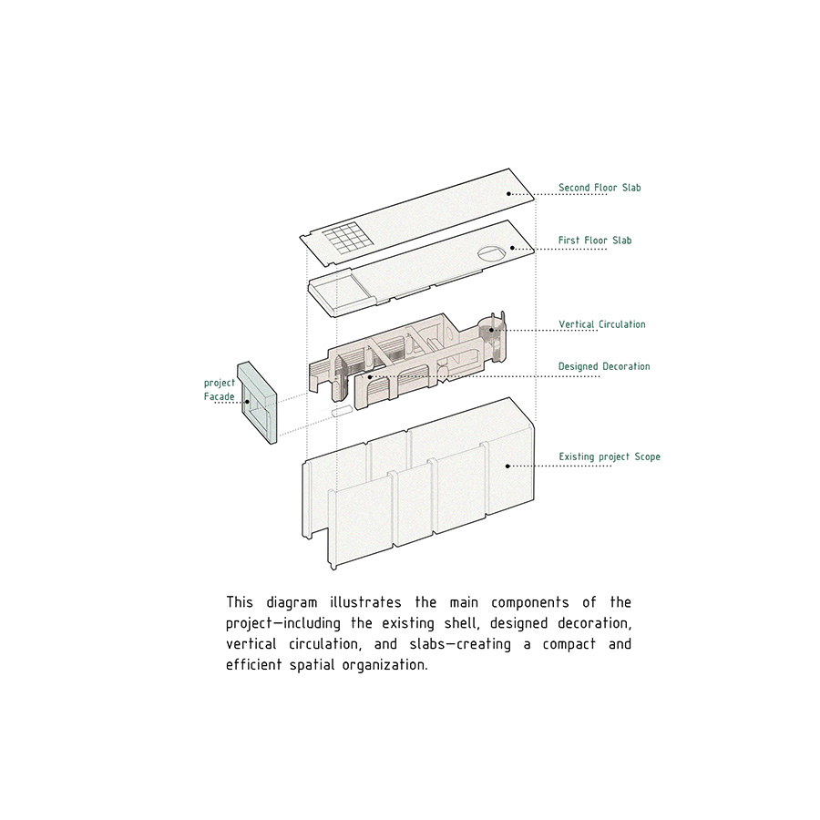 در بخش انتظار، نیمکتهای ثابت با روکش سبز، ضمن حفظ ثبات بصری، کارایی فضا را افزایش میدهند. پیشخوان پذیرش سبز با طرح کلی طراحی همسو است. نورپردازی و آینهها استراتژی نورپردازی، چراغهای سقفی خطی، نورپردازی تأکیدی برای نمایشگرها و نورپردازی متمرکز در بخش ویژه را ترکیب میکند و منجر به یک فضای داخلی روشن و جذاب میشود. آینههای موجود در مسیر انتخاب عینک نه تنها به مشتریان کمک میکنند، بلکه بازتابها را نیز تقویت میکنند و باعث میشوند فضا بزرگتر به نظر برسد. طبقه اول – فضاهای پشتیبانی طبقه بالا شامل عملکردهای پشتیبانی از جمله سرویس بهداشتی، انبار و انبار است. این فضاها به طور کارآمد و با حداقل تداخل با مناطق عمومی قرار گرفتهاند و عملکرد روان کارکنان را تضمین میکنند. نتیجهگیری عینک نورا نمونهای از این است که چگونه طراحی داخلی متفکرانه میتواند یک محیط شهری فشرده و پرترافیک را به محیطی متمایز و کاربرپسند تبدیل کند. این پروژه با تأکید بر خوانایی، فرمهای نرم، مصالح طبیعی و نورپردازی هوشمند، تجربهای کاربردی، آرامشبخش و خاطرهانگیز را برای مشتریان و بازدیدکنندگان ایجاد میکند.