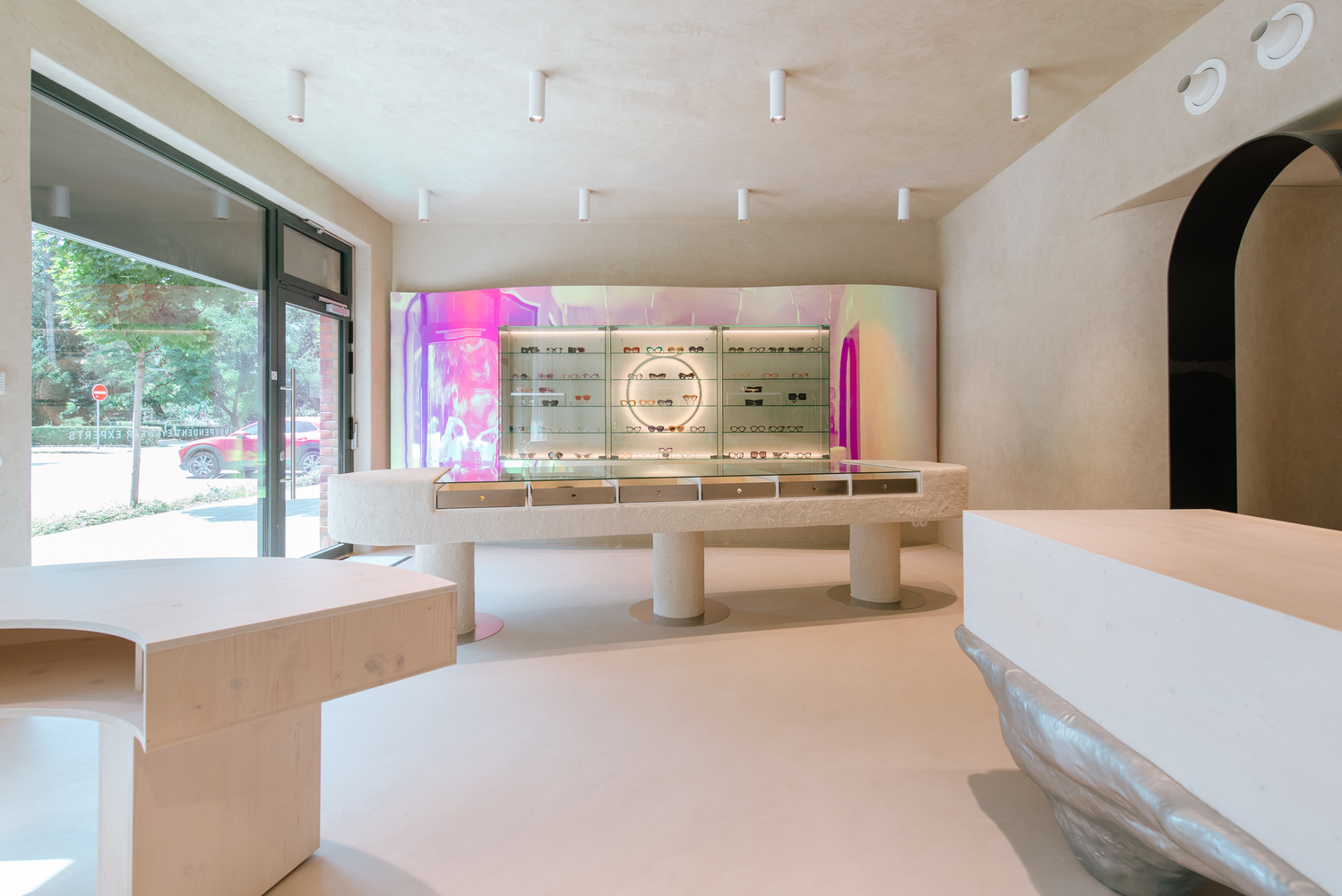 طراحی داخلی فروشگاه عینک با استفاده از خاک رس
