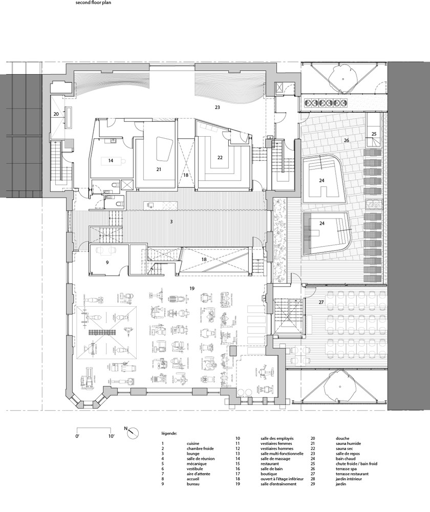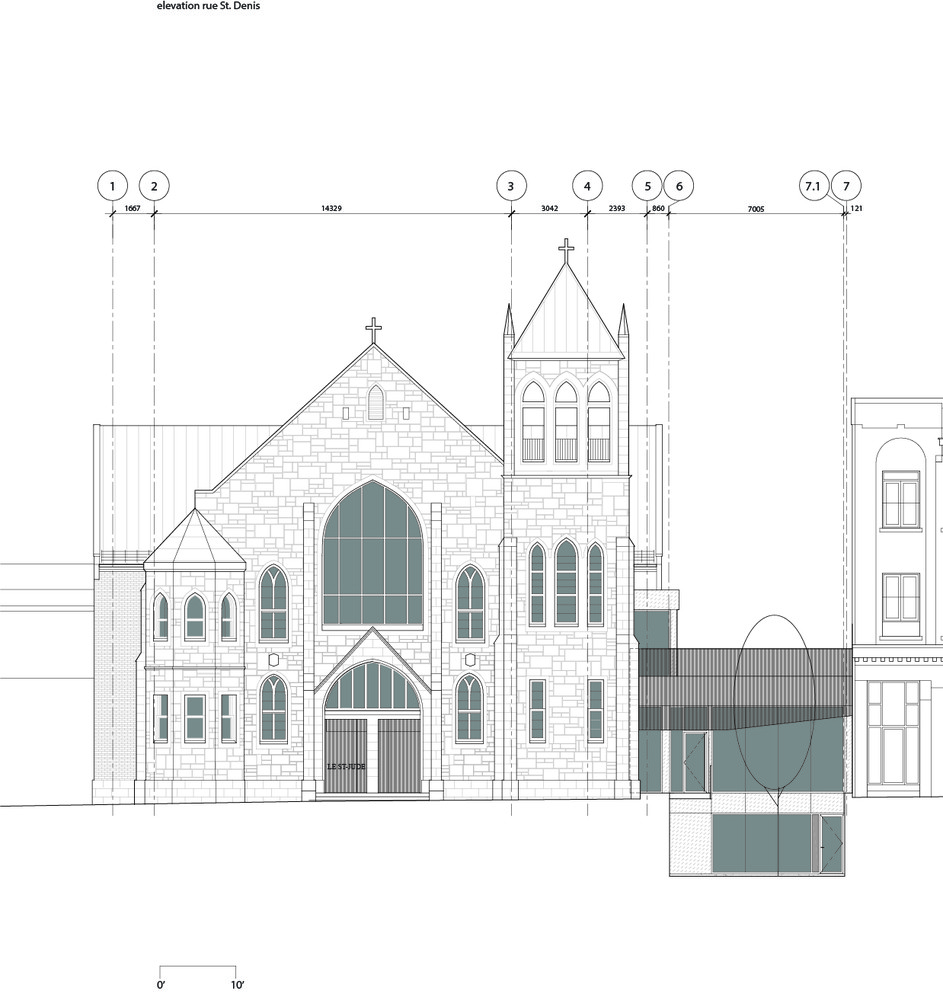طراحی داخلی مرکز سلامت و اسپا با سازه ای سنگی آجری و فولادی در ساختاری از کار افتاده و امتداد آن به کلیسای دومینیکن و پناهگاه به بانوی تسبیح و سنت جود واقع شده است. سازه سنگی، آجری و فولادی ۱۹۰۷، بخش شلوغی از خیابان سنت دنیس، یکی از شریان های تجاری اصلی مونترال را اشغال می کند و در قلب پلاتو، یکی از پرجنب و جوش ترین مناطق مسکونی مونترال قرار دارد. باز سازی فضای داخلی این پروژه دارای ویژگی هایی است که در ادامه به آن می پردازیم.