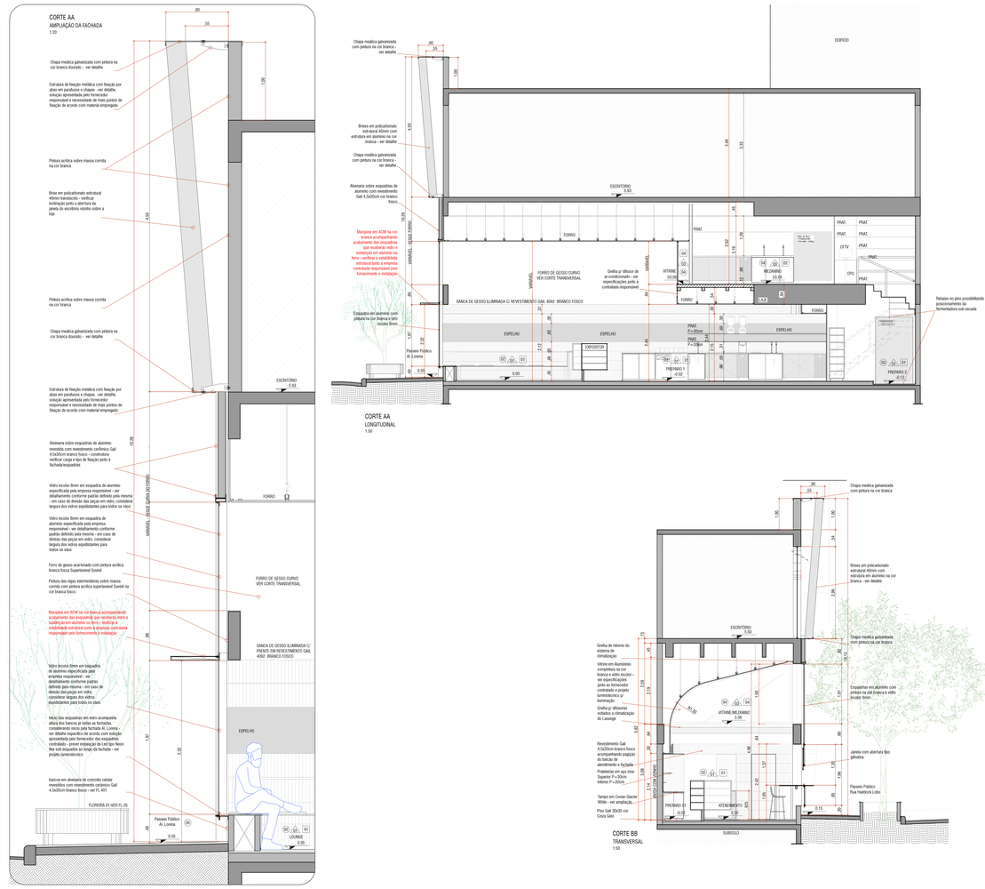 آن ها همچنین با طراحی سایه بان های عمودی که به تداوم زبان بصری طبقه همکف و نیم طبقه اول کمک کرده، تا برای نما عظمت را به ارمغان آورد. همچنین برجستگی بیشتری برای کافه تریا در گوشه Alameda Lorena و Haddock Lobo تضمین کرده اند.