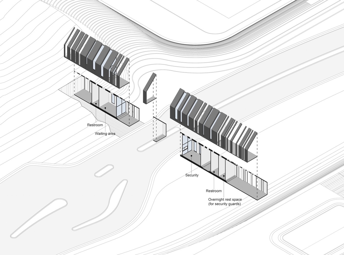 طراحی سازه ورودی محله مهرگان اثر زند حریرچی هدف طراح بازتعریف مفهوم “مرز” با ترکیب عناصر شکل، فضای مثبت و منفی، متریال، نور، خط افق و سطوح بوده است. هدف اصلی این پروژه ارائه یک تجربه متمایز از «ورود به یک فضا» با ایجاد حس مکث بود. این ساختمان بر اساس مفهوم “شفافیت” طراحی شده است. بنابراین، با ایجاد ارتباط بصری بین ساکنین و محیط اطراف، مرز بین مناطق داخلی و خارجی سایت محو می باشد.