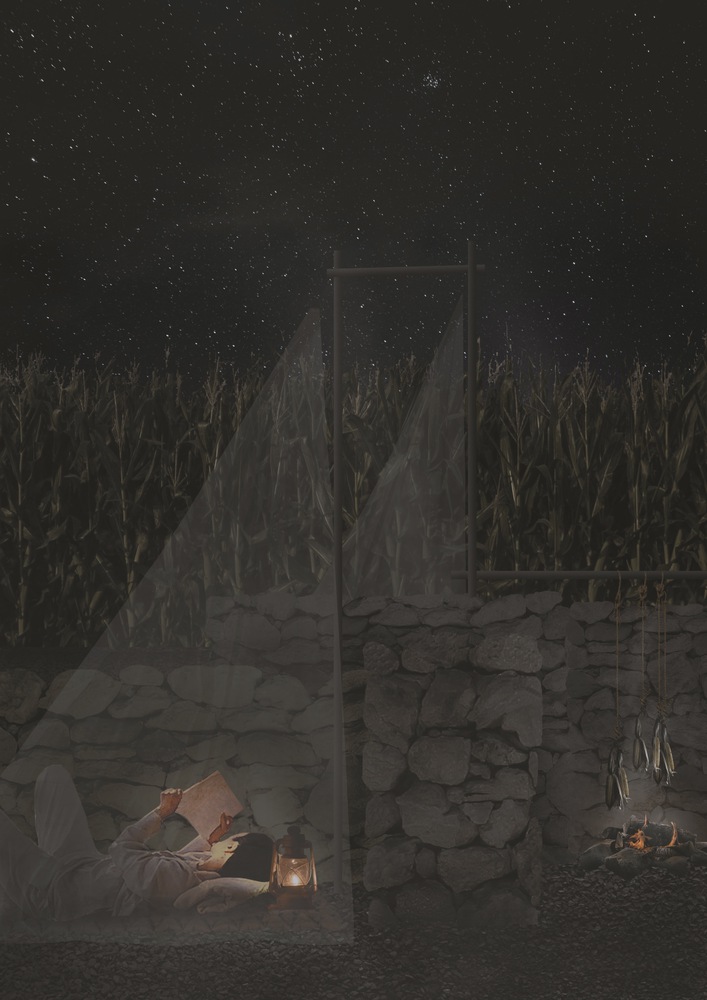 طراح سعی کرده راهی برای مداخله در بافت غنی اکولوژیکی سایت به روشی ظریف و پاسخگو پیدا کند. او ویژگی را پیشنهاد کرده که از نظر موقتی و سبکی با مزرعه هماهنگ باشد. بنابراین، اهدافی را برای بهره مندی از رشد انعطاف پذیر و ارگانیک مزرعه تعیین کرده. سعی کردیم تعامل خود با طبیعت را برجسته کنیم و با روایتی معماری و فضایی آن را نمادین کنیم.