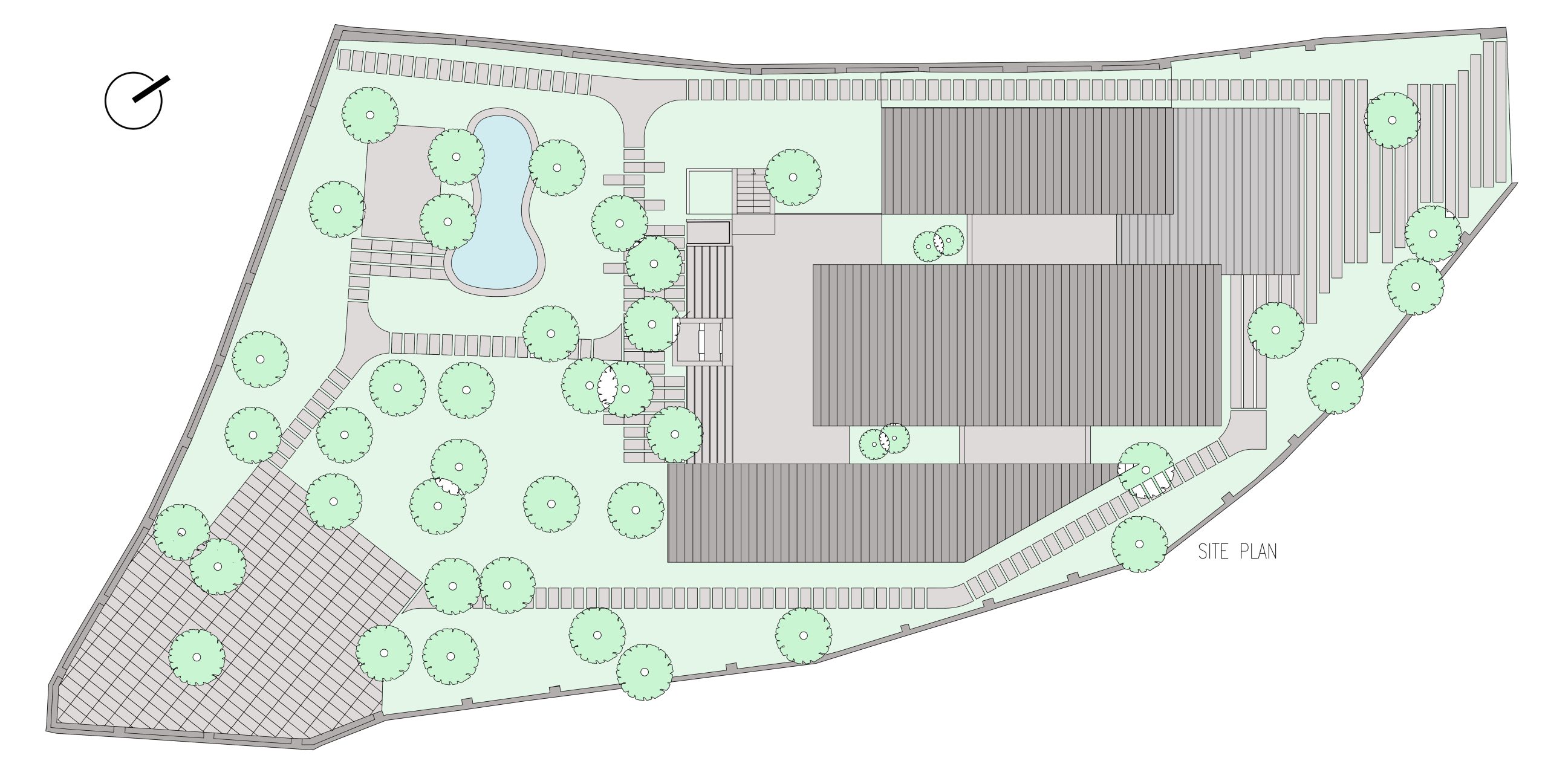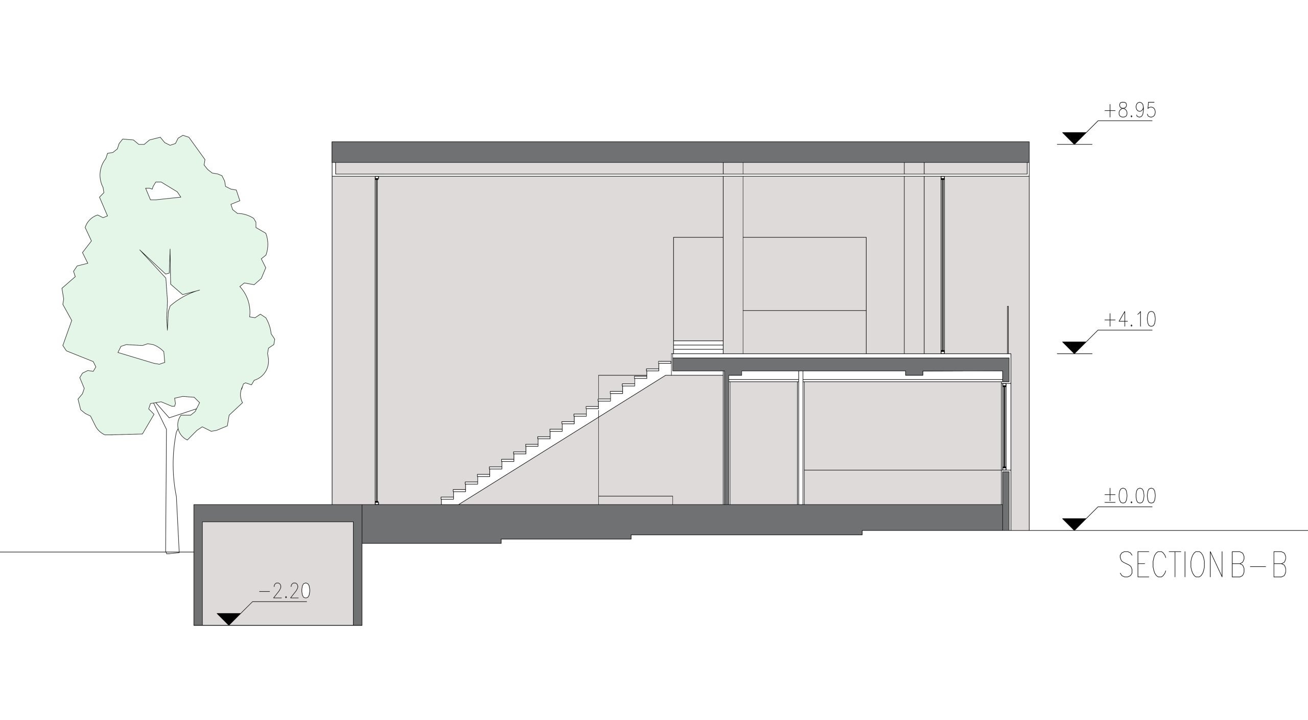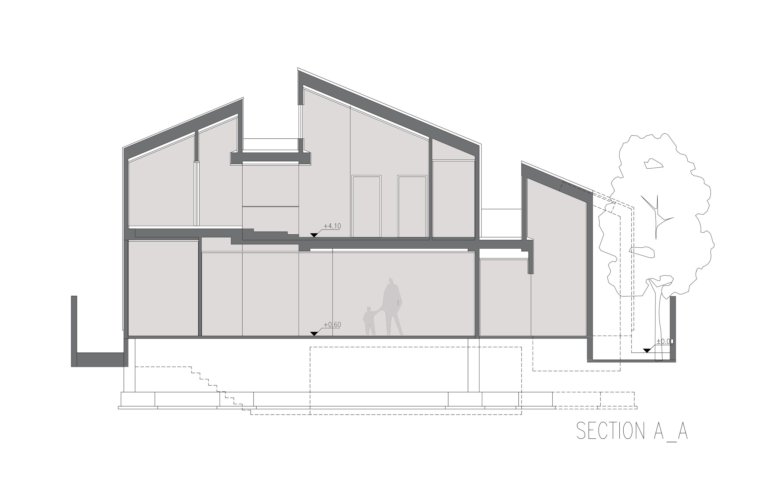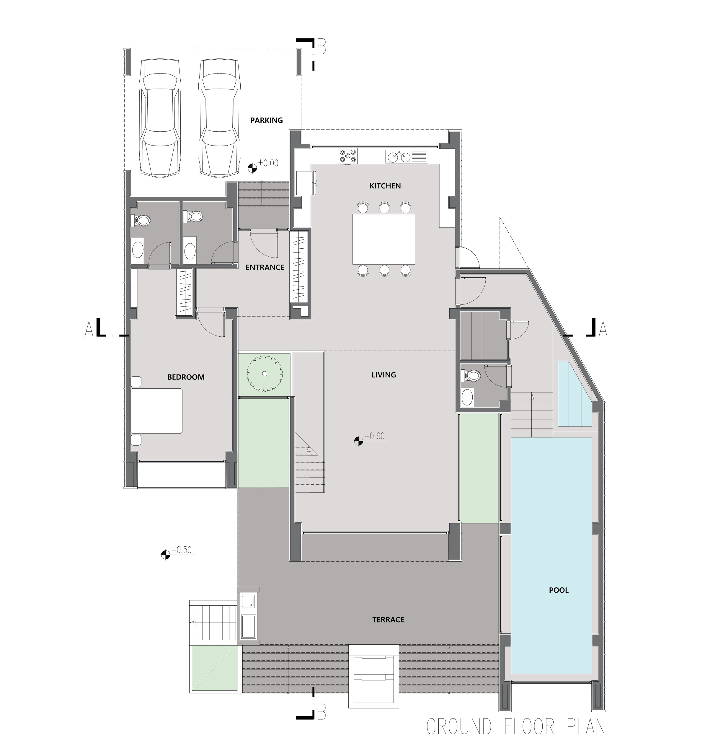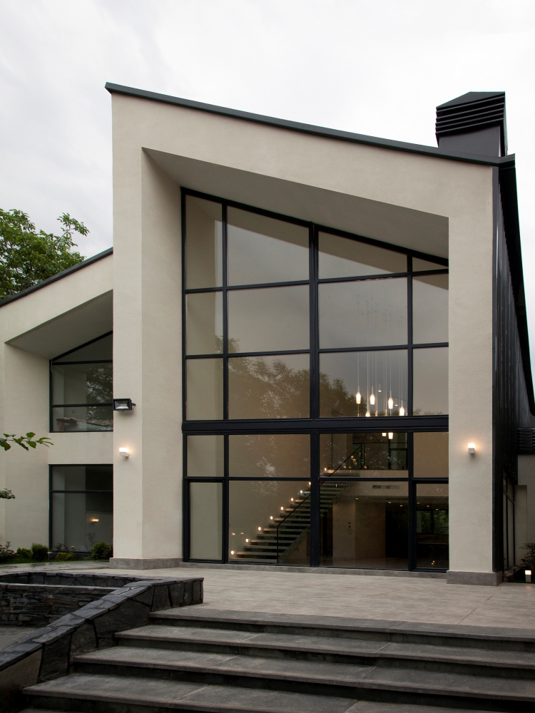 رسیدن به فضاهای مورد نیاز خانواده شامل پدر مادر، پسر و همسر و فرزند، دختر و همسر و فرزند، در محدوده ساخت منجر به توده ای شد که برای شکستن آن و به درون آوردن باغ به سه توده مجزا بریده شده است. در نتیجه باغ بین دو شکاف ساختمان نفوذ کرده و در فضاهی داخلی ساختمان احساس در هم تنیدگی با محیط سبز محسوس است.