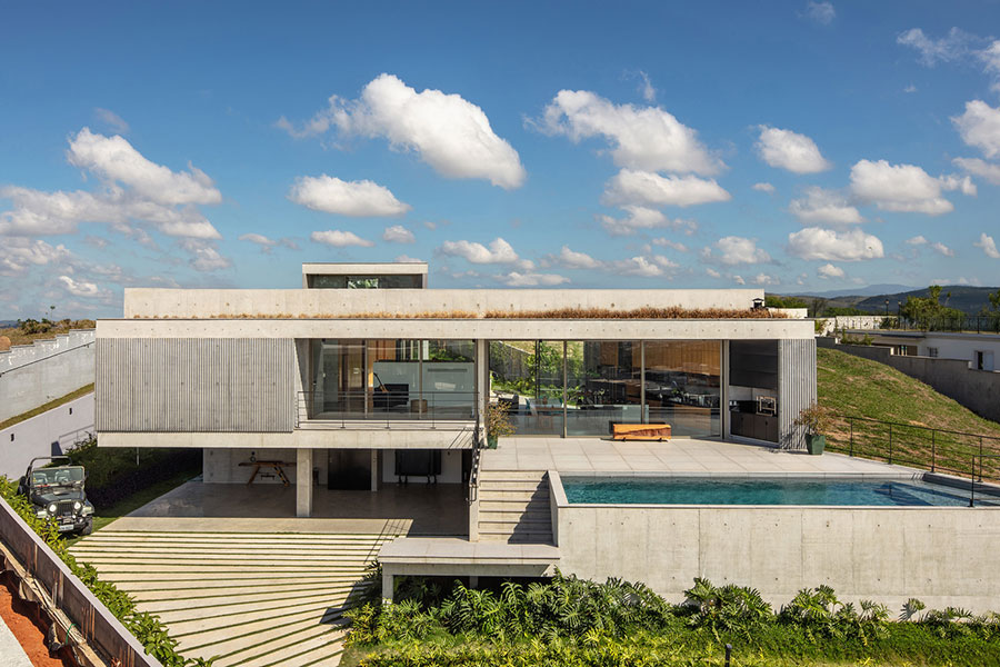 در این پروژه، با نمونه ای شاخص از معماری معاصر مواجه هستیم، معماری ای که به جای خودنمایی اغراق آمیز، بر سکوت، تعادل و گفت و گو با بستر طبیعی تأکید دارد. بنایی که در قاب عکس دیده می شود، نه صرفاً یک خانه، بلکه بیانیه ای فضایی از نحوه زیستن انسان مدرن در پیوند با طبیعت، تکنولوژی و سادگی آگاهانه است. این پروژه را می توان تبلور اندیشه ای دانست که در آن معماری، واسطه ای میان زمین و آسمان، ماده و نور، و زندگی و چشم انداز پیرامونی است.