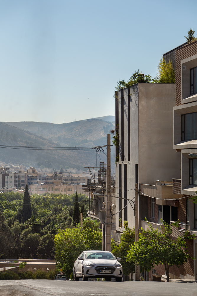 این خانه مسکونی برای مریم و فرج، که در مکانی عالی در شیراز، درست رو به محوطه سبز دانشگاه واقع شده است، به مجموعه ای منحصر به فرد از فرصت ها و محدودیت ها پاسخ می دهد. این مکان، منظره ای نادر و پیوسته از شمال ارائه می دهد، با این حال عرض باریک ۱۲ متری آن و بافت شهری متراکم، محدودیت های فضایی شدیدی را تحمیل می کند. فرآیند طراحی به یک عمل مذاکره تبدیل شد – نه تنها با سایت و مقررات شهرداری، بلکه با نیروهای محیطی و خواسته های شخصی مشتریان.