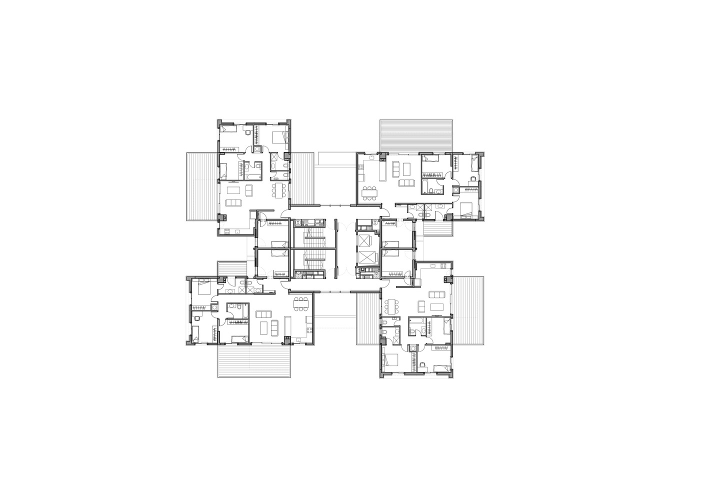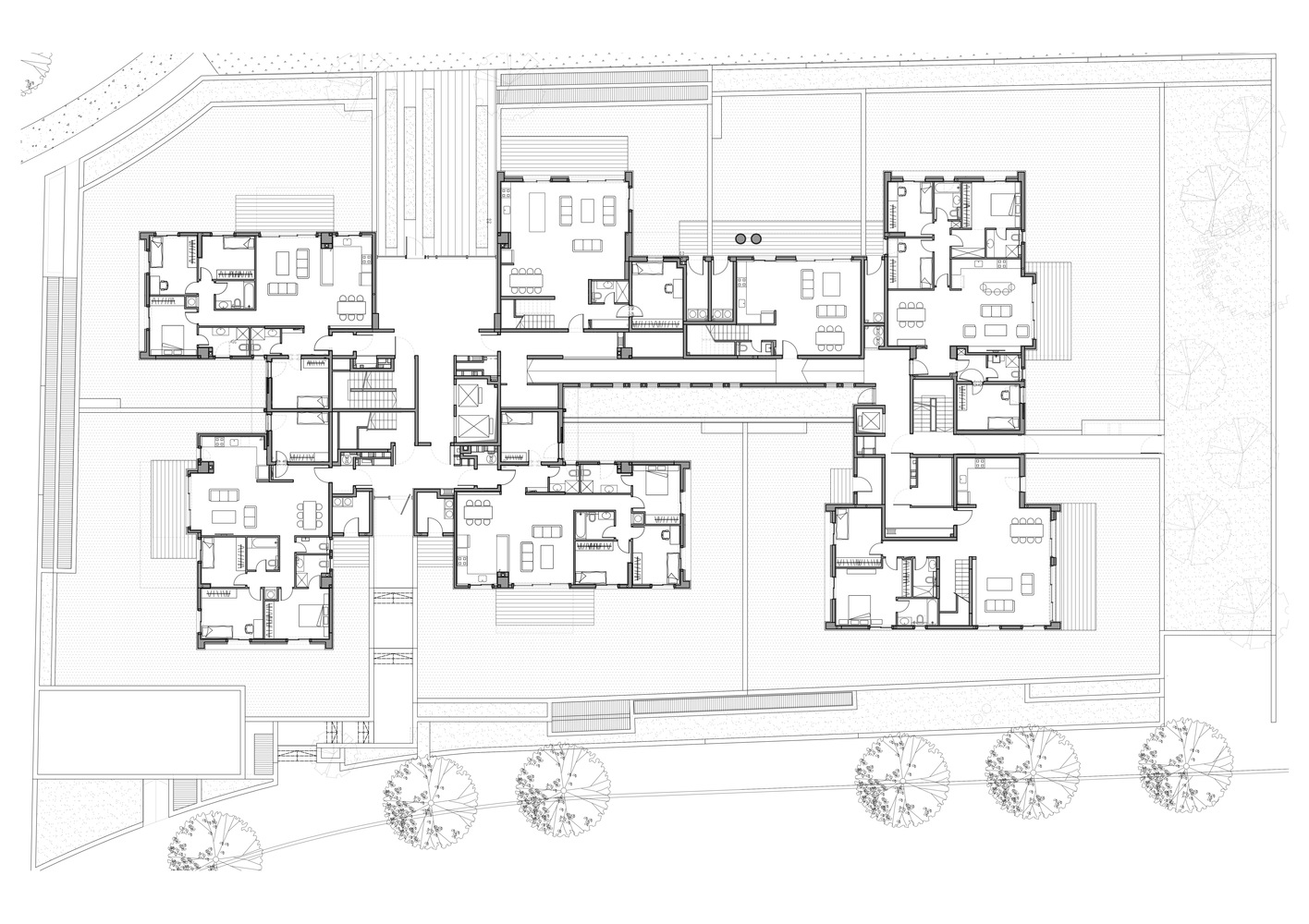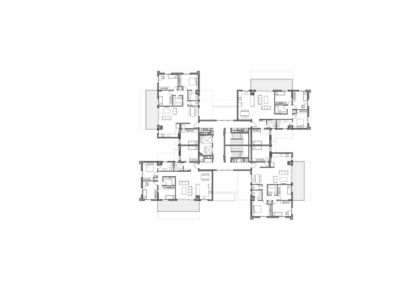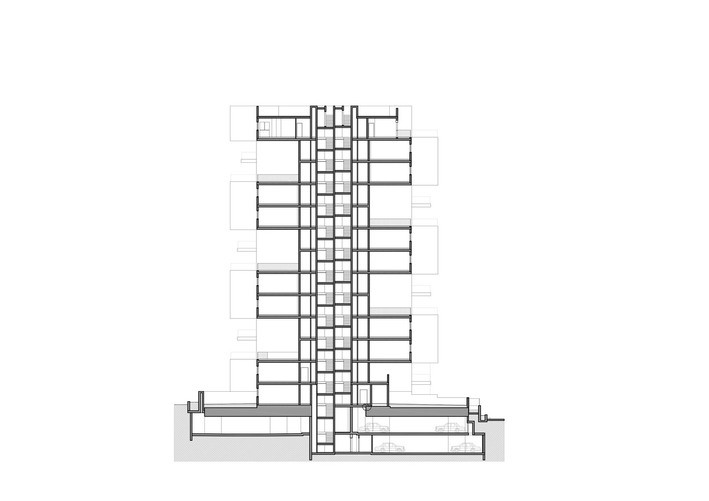 حجم ساخت و ساز بزرگتر از مجموع حقوق ساختمان تعیین شده است، و این فرصت را به طراحان داده است که با انبوه سازی کنند و آن را دوباره مجسمه سازی کنند، زیرا محدود به محدودیت های ساخت و ساز معمولی برای زمین های شهری نبوده اند. بنابراین آن ها این فرصت را داشته اند که ۱۷ نوع آپارتمان مختلف (در مجموع ۵۶ واحد) طراحی کنند که هر کدام یک تراس بزرگ را ارائه می دهند، به اندازه ای که تنها آپارتمان های باغ و پنت هاوس تا به امروز از آن برخوردار بوده اند. علاوه بر این، آپارتمان مستقل و دوبلکس منحصر به فرد را برنامه ریزی کنیم.