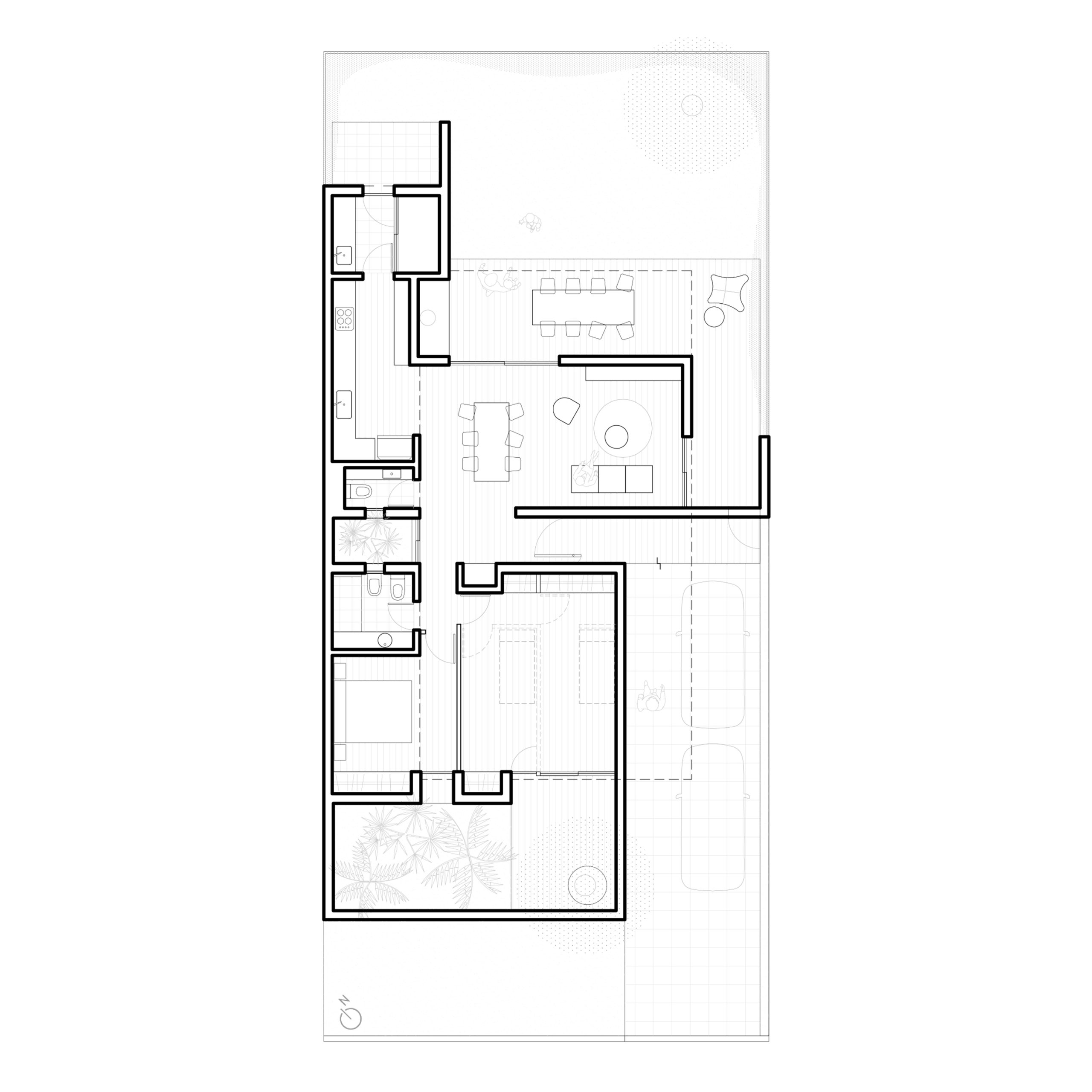 این موضوع به طور متناوب از یک طرف دسترسی به خانه را در اولویت قرار می دهد و از طرف دیگر نور شمال غربی را جذب می کند و روشنایی بیشتری را به مناطق اصلی خانه می دهد. انواع مختلف پاسیو در درجه اول به نیازها و ویژگی های کاربری های خاص مسکن پاسخ می دهند. هر فضای خانه با گسترش خود قاب بندی و تکمیل می شود، هر فضای جامد با فضای خالی خود.
