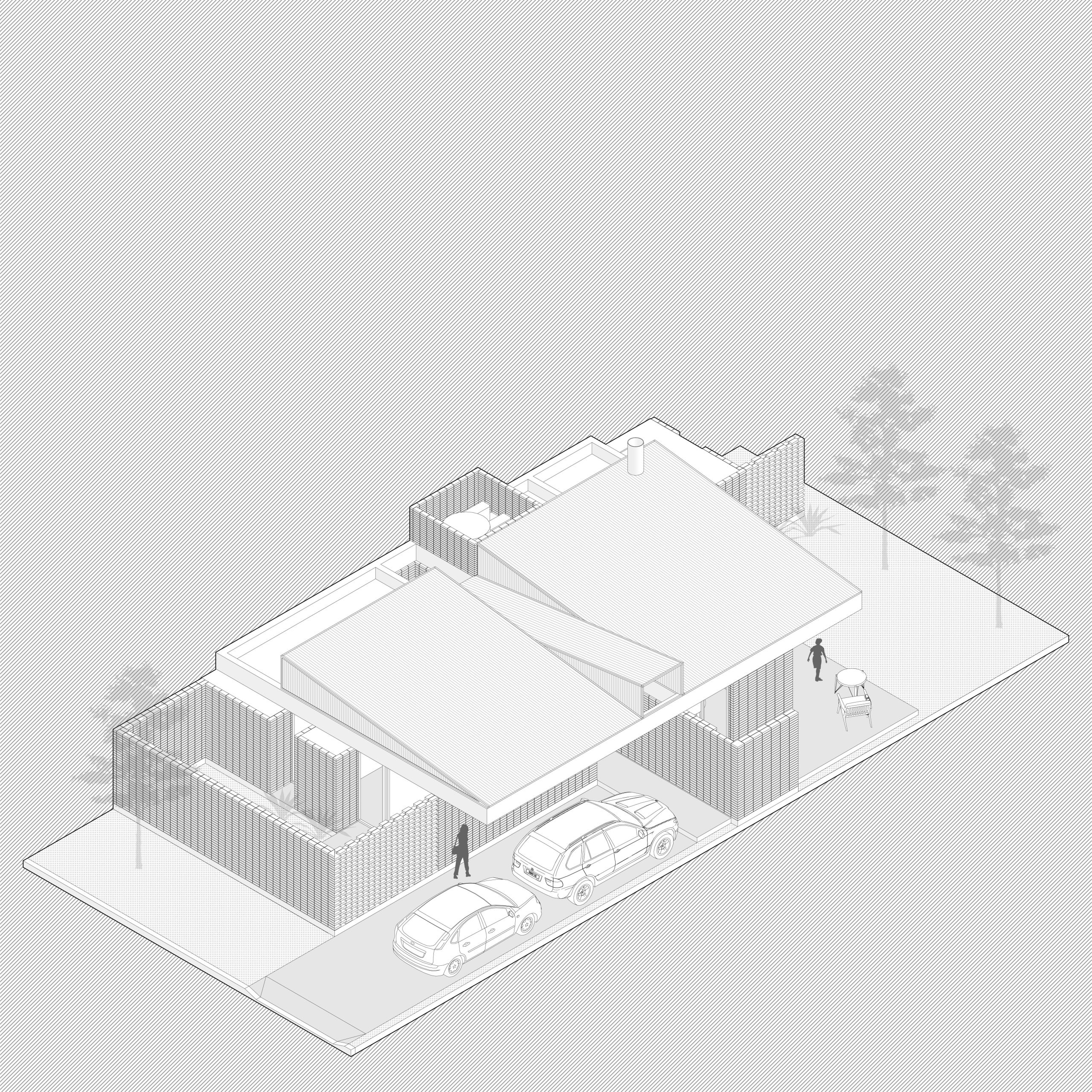 مورفولوژی این خانه بر اساس حجم های جامد است که در آن آجرها شبکه ای را تشکیل می دهند که در مکان های خاصی از هم جدا می شوند و اجازه عبور نور را می دهند، شکل گرفته است. افقی بودن بتن به عنوان یک لولا بین آجرکاری و سقف عمل می کند. در آن طراحان به دنبال ایجاد یک بازی از تمایلات بوده اند.