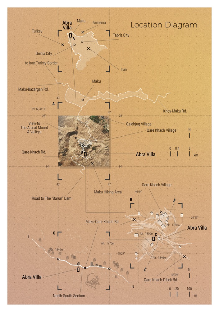 خانه باغ ابرا در منطقه ای غیر شهری در منطقه آزاد ماکو واقع شده است. سایت پروژه در ارتفاعات قره خاچ با چشم انداز اسرارآمیز و طبیعت بکر، مردم را به دوری از شهر و هیاهو، عبور از ریتم تند زندگی و استراحت ساعتی در مه و ابر فرا می خواند. در ادامه به بررسی ویژگی های این پروژه معماری خانه باغ خواهیم پرداخت.