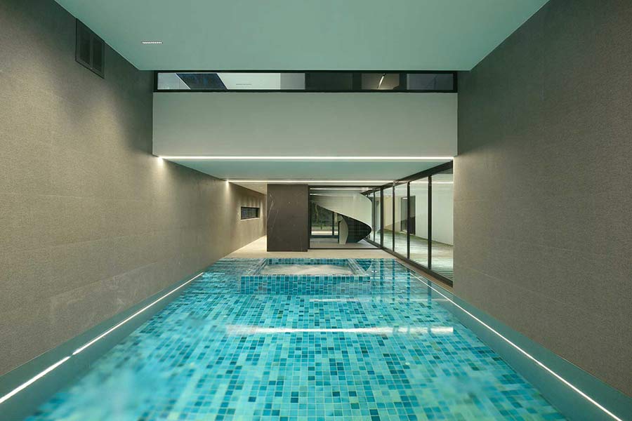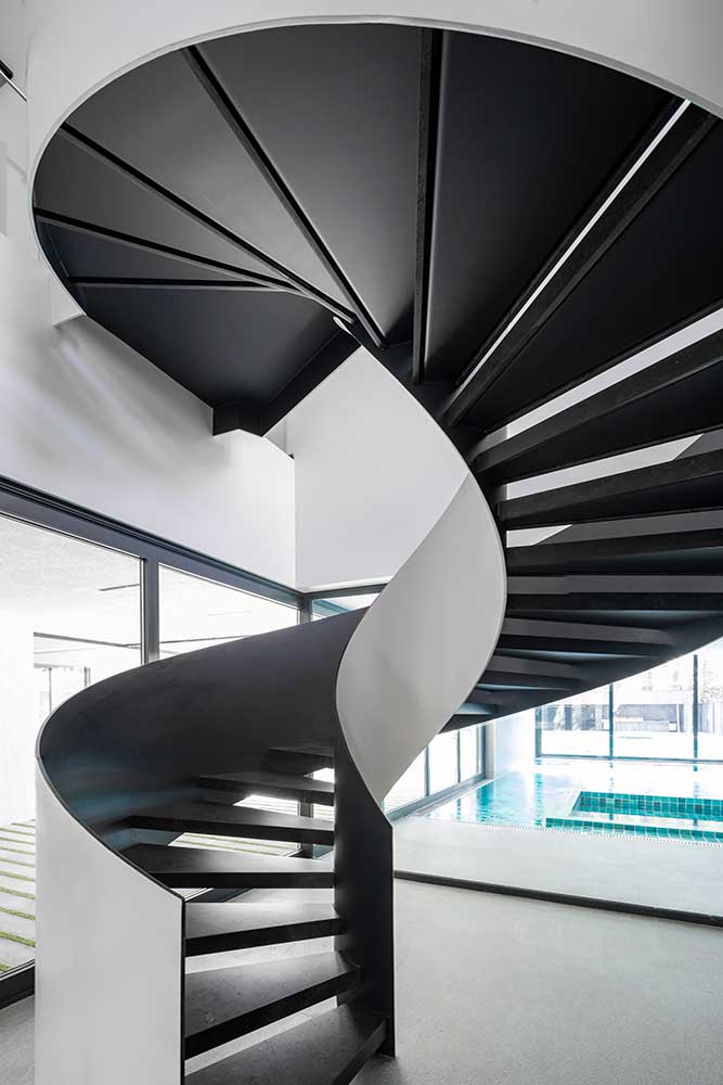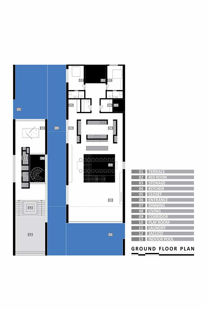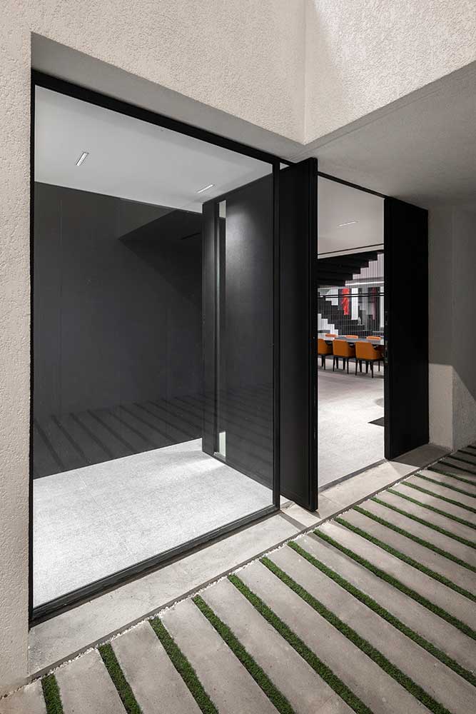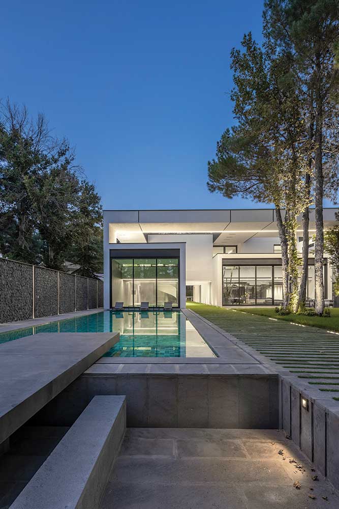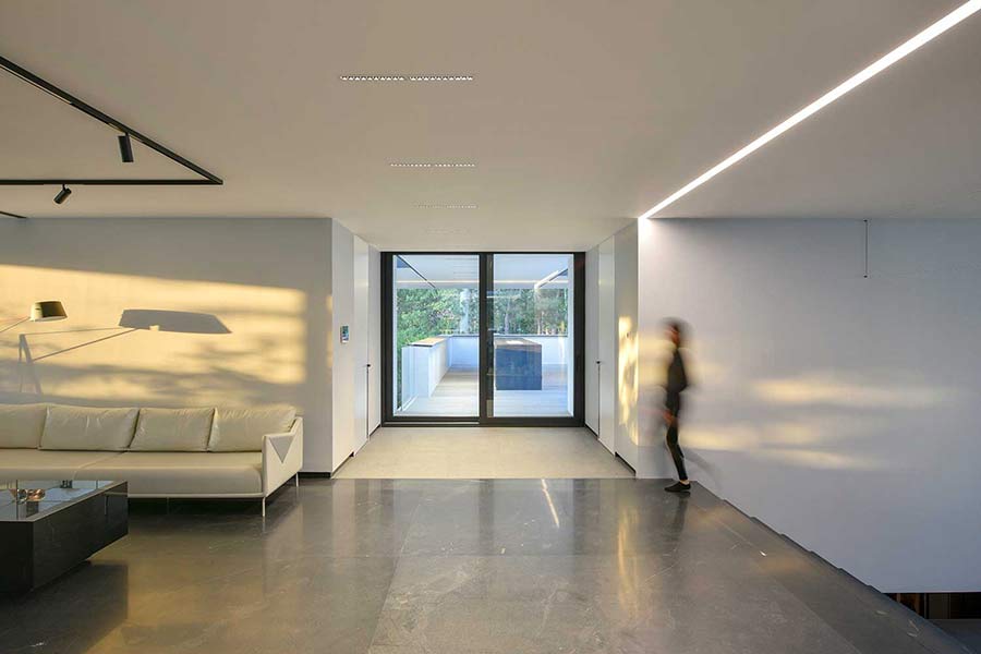 گفتگوی فضای بین حجم داخل و شکل بیرونی و امتداد هر یک در دیگری، منجر به تجربهی مشترک از فضای اصلی زندگی با لحظات خصوصی برای ساکنان خانه میشود.