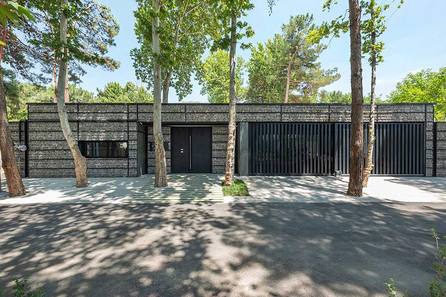 خانهی شمارهی ۷۵ با زیربنای ساخت ۸۵۱ مترمربع در دو طبقه و در شهرک زیبادشت کرج قرار دارد، جهتگیری زمین در راستای شمالی-جنوبی و قرارگیری ساختمانی در همین راستا به منظور بیشترین بهرهگیری از نور و منظر سایت و همچنین حفاظت از درختان موجود در آن است.