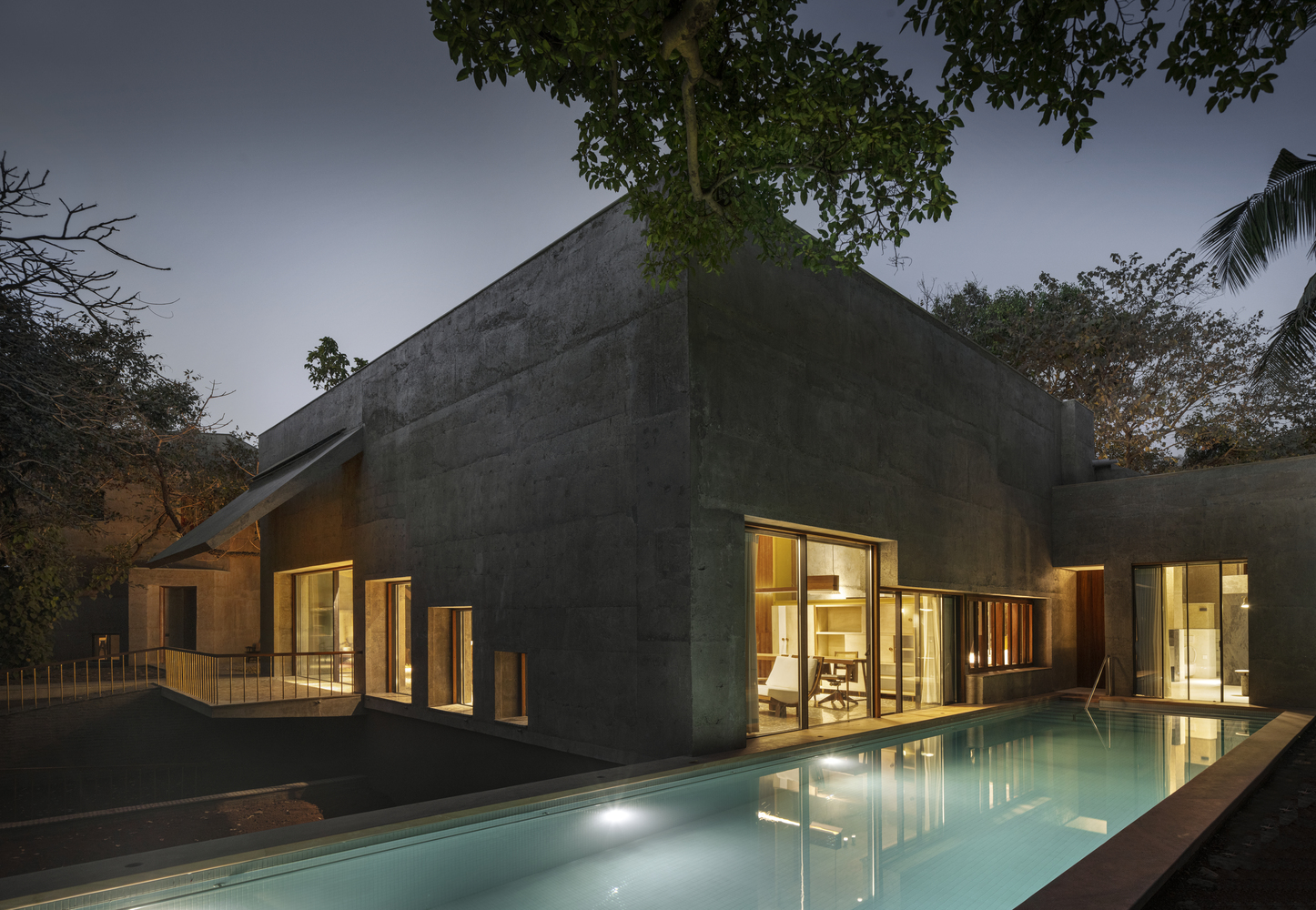 خانه آزمایش های بتن یک پروژه معماری مسکونی است که در شهر ساحلی علیباگ، نزدیک بمبئی در کشور هند واقع شده است. این خانه در میان یک باغ انبه واقع شده است. هر مشتری برای آزمایش ایده ها و مواد جدید برای خانه خود مردد است، اما نه صاحب این خانه که حامی واقعی است. او که در MIT تحصیل کرده است، یک ذهن مترقی متفکر با نگرشی مدرن نسبت به نوآوری و درک این موضوع که شکست تنها یکی از چندین قدم برای موفقیت است. او میدانست که محیط زیست و مراقبت از آن اصلی ترین موضوعاتی است که هزینه های هر چیز جدید، در نتیجه ی مستقیم آن اندازه گیری نمی شود، بلکه در کاری که سال های آینده انجام می شود، و معماری بالاترین شکل هنر است.