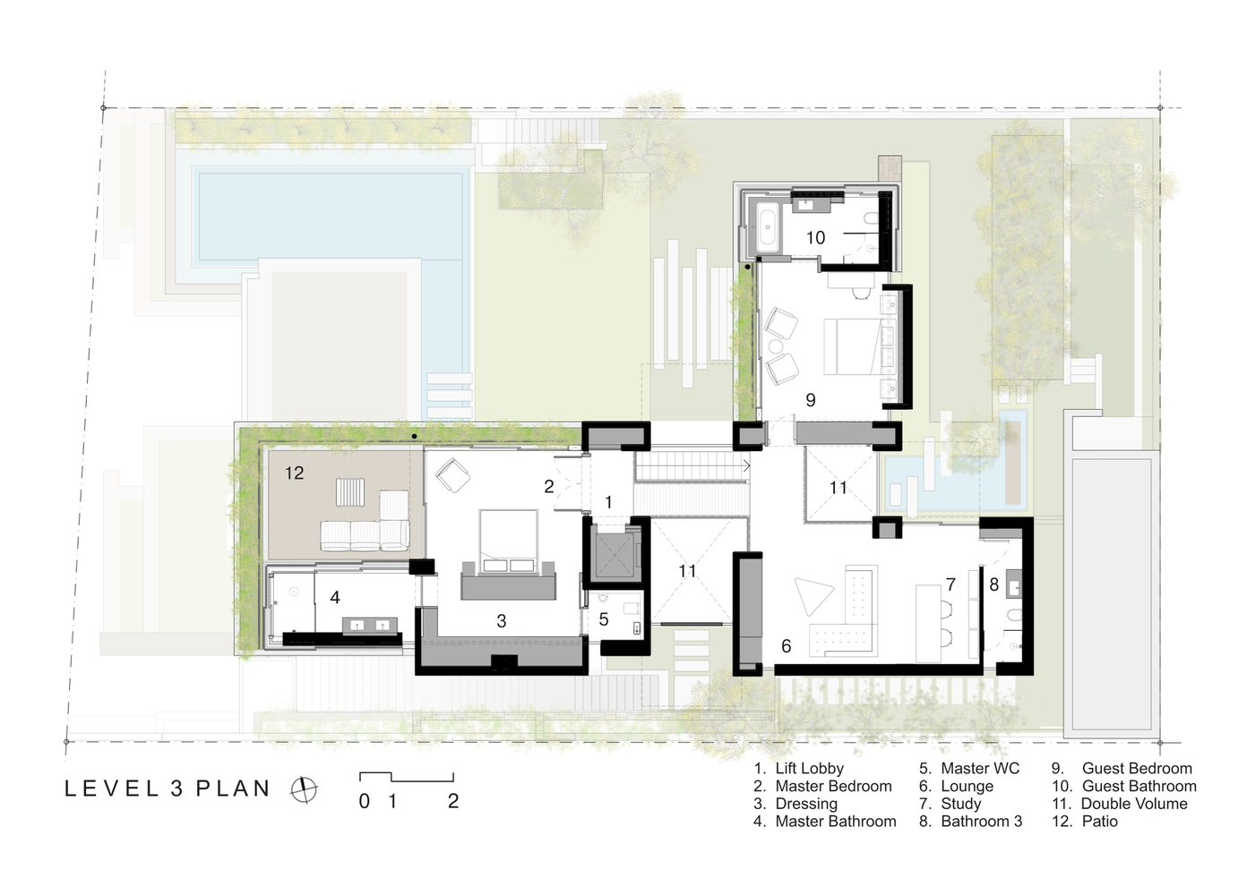 در معماری خانه ویلایی، Clifton فضاهای نشیمن سرپوشیده و بیرونی بدون درز به حیاطی راحت و محافظت شده می ریزند که به جای پاسخگویی به منظره های دریا، حداکثر نوردهی به شمال را ممکن می سازد.