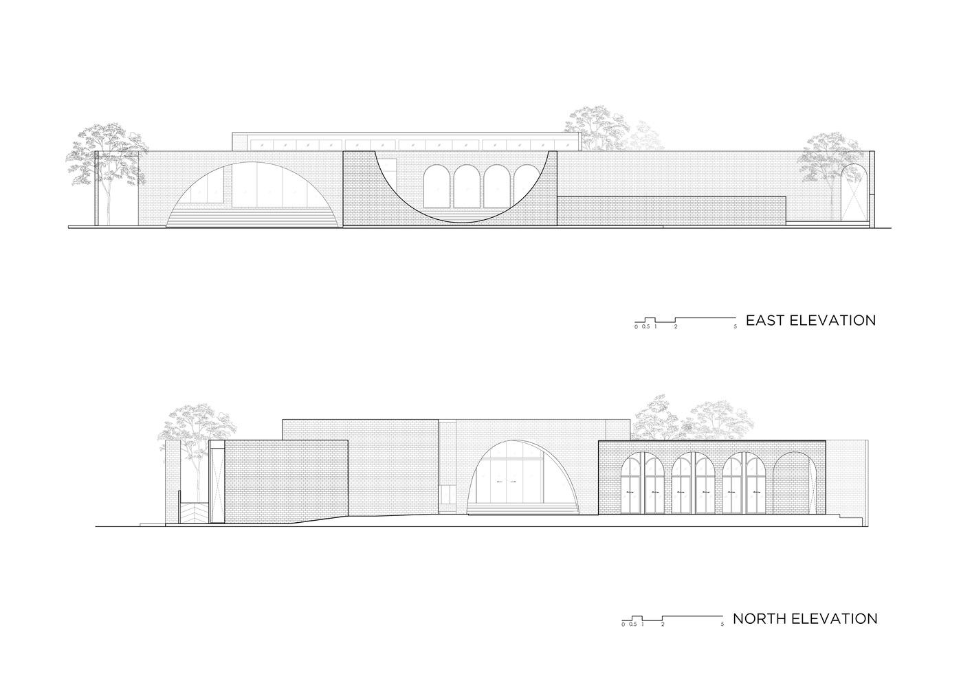 مفهوم “سپیده دم تا غروب” به وضوح در طراحی بیرونی و داخلی این پروژه بیان شده است. “سپیده دم” و “غروب” را می توان از طریق تصویر خورشید در هنگام ظاهر شدن و ناپدید شدن آن به تصویر کشید. در قسمت بیرونی، بخشی از دایره که نمایانگر خورشید است، از دیوار آجری حک شده است که نماد طلوع و غروب خورشید است. این دایره ناقص برای مناطق مختلف به شکل قوس نیز صدق می کند. هر منطقه یک نام و مفهوم در ارتباط با “سپیده دم” و “غروب” دارد، از جمله یک نوار خورشیدی، فضای قمری و اتاق واردا.