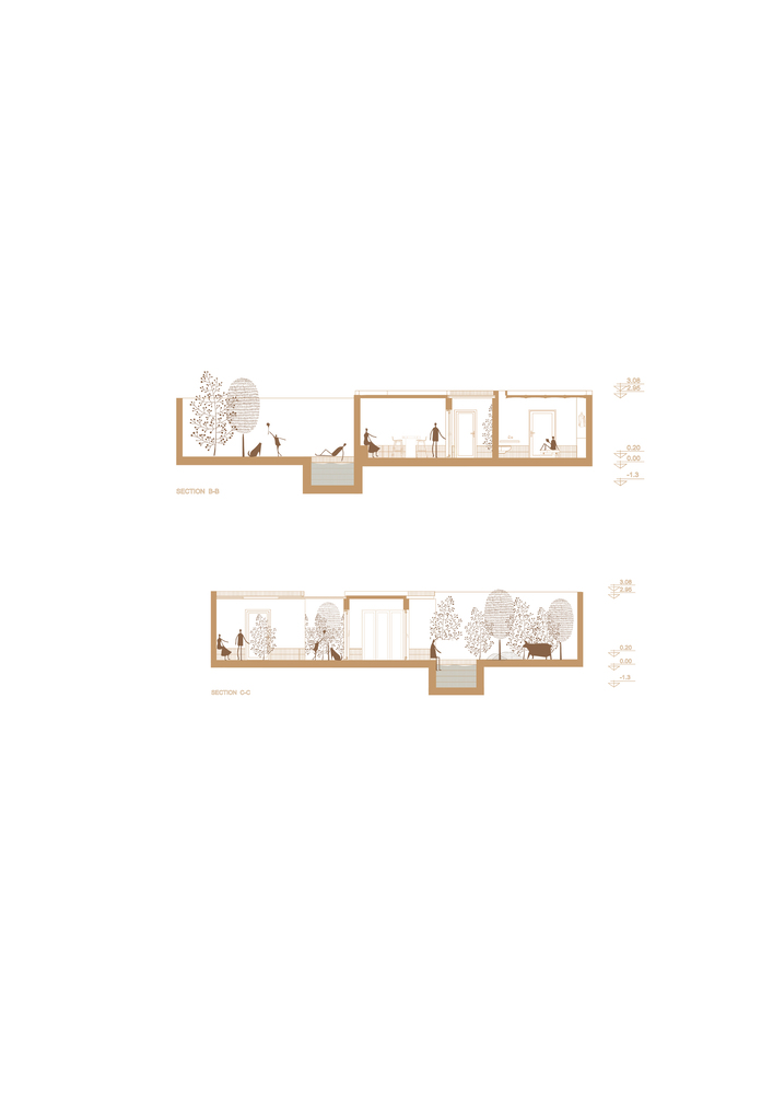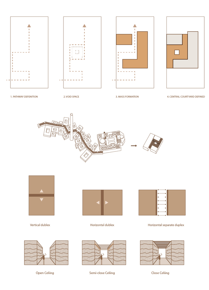 مسیر داستان ما خانه بود. فلنور که در اطراف بامبو قدم می زند بالا و پایین می رود و کنجکاوی ایجاد می کند که منجر به کشف مکان های صمیمی و غیرمنتظره می شود. مکانی که نظاره گر روشنایی آسمان آبی و صمیمیت بی صدا فضاهای خصوصی است. زمین به دلیل ماهیت خود یکی از بهترین مصالح ساختمانی پایدار است، زیرا از نظر تاریخی طولانی ترین مصالح مورد استفاده بشر است. این محصول به طور جهانی در دسترس طبیعی با جرم حرارتی سنگین است. جیره بندی یا انحصاری نیست و ضد آتش و صدا است. به این دلایل، ما یک ماده واحد را برای ساخت خانه انتخاب کرده ایم: زمین rammed.