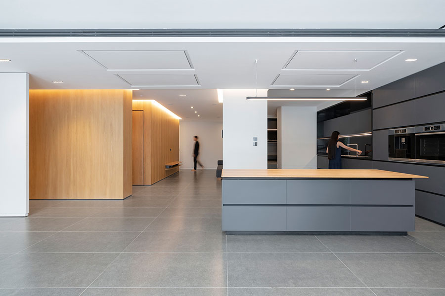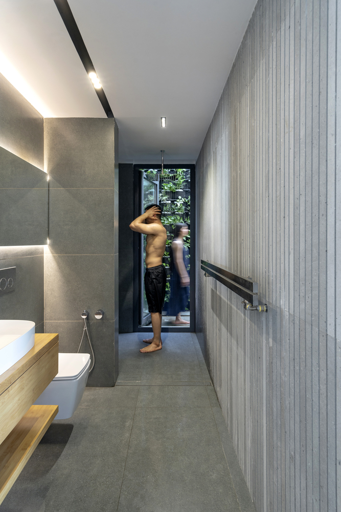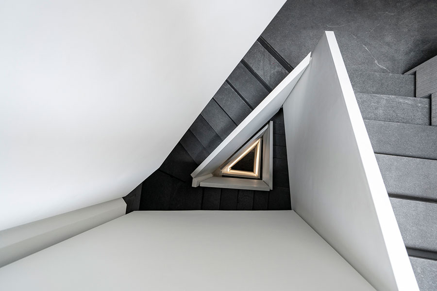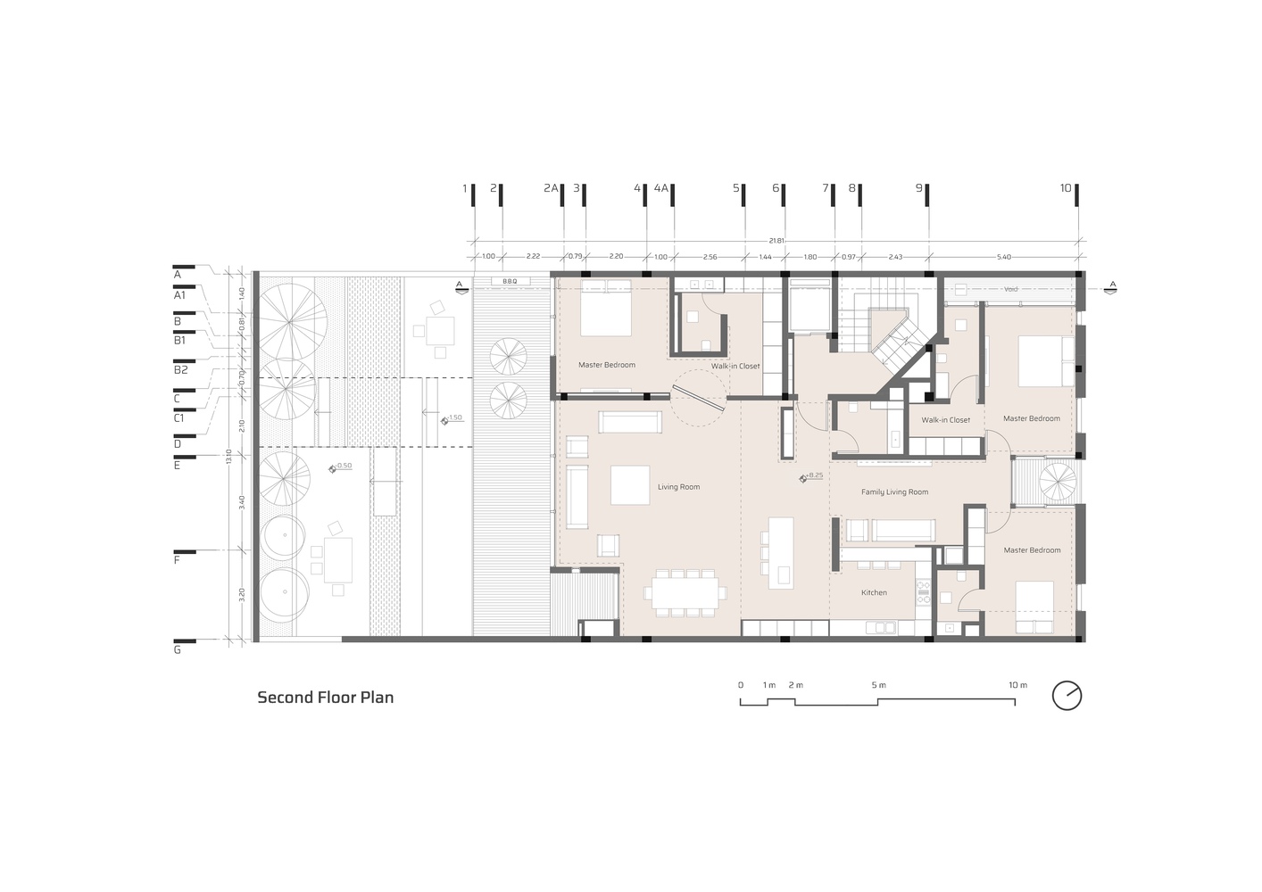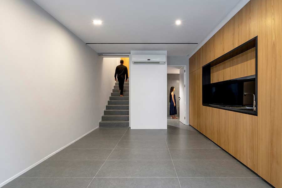 در این پروژه، بالکن نقطهی اتصال بدنهی بیرونی و فضای داخلی است. به عبارت دیگر، جداسازی اتاق خوابهای شرقی و غربی دیگر محدود به دیوارهای صلب یک بالکن سنتی نیست. این بالکن مهم، مانند یک جعبهی شیشهای، نور و منظرهی مناسبی را برای اتاق خوابها و اتاق نشیمن خانوادگی فراهم میکند.