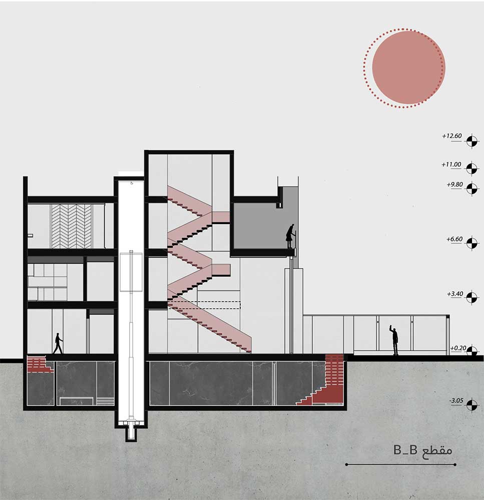 با بررسی شاخص های امکان احداث پروژه از جمله همجواری ها و واحدهای همسایگی سعی شده است تا میزان هارمونی در طرح فضای خارجی و محیط پیرامونی با طرح فضای داخلی به بالاترین حد خود برسد. لذا بر اساس این استدلال در اولین قدم، ساختمان را در ۴ سطح تعریف شد ه است: