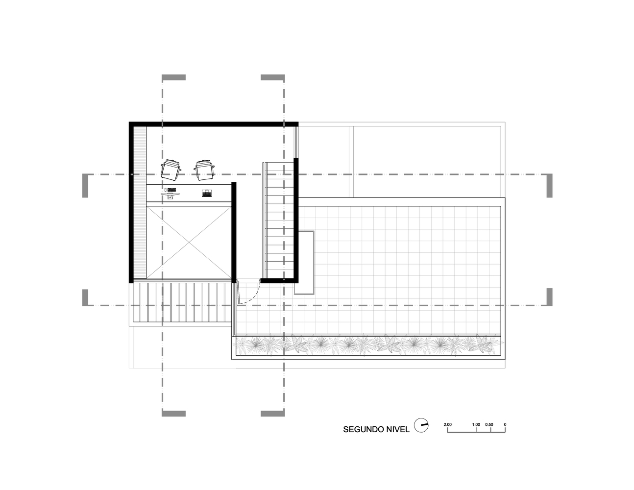 اتاق نشیمن، اتاق دوم و فضای پارک دوم حذف می شوند تا راه را برای منابع برنامه ای مختلف که طرح معماری را غنی می کنند، باز کنند. در طبقه همکف، یک پارکینگ تک پیشنهاد شده و یک انبار کوچک اضافه شده است. حذف اتاق نشیمن پیش بینی می شود زیرا مشتری واقعاً پویایی اجتماعی را که در اطراف آشپزخانه اتفاق می افتد ترجیح می دهد. فضای ناهار خوری، پس از آن، با نورهای صبح و عصر تغذیه می شود، و همراه با یک پاسیو که با یک صفحه آجری سفالی تزئین شده است، جایی که می توانند گیاهان با گلدان های مختلف به سبک آزاد داشته باشند.